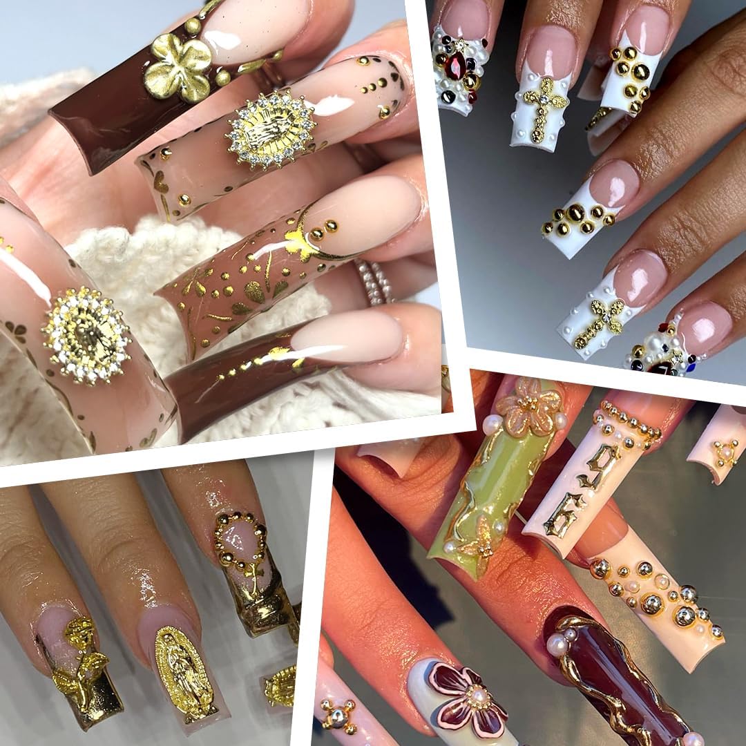 Ideal Gift: The gold nail decorations kit for nail art can satisfy your needs in wedding wearing, proms, birthdays, party and daily life. They are the wonderful gift for friends, families, girl friends on a lot of festive occasions, like Mother's Day, Valentine's Day, Halloween, Christmas, etc. If you have any question about this product, please send us a message for a solution.