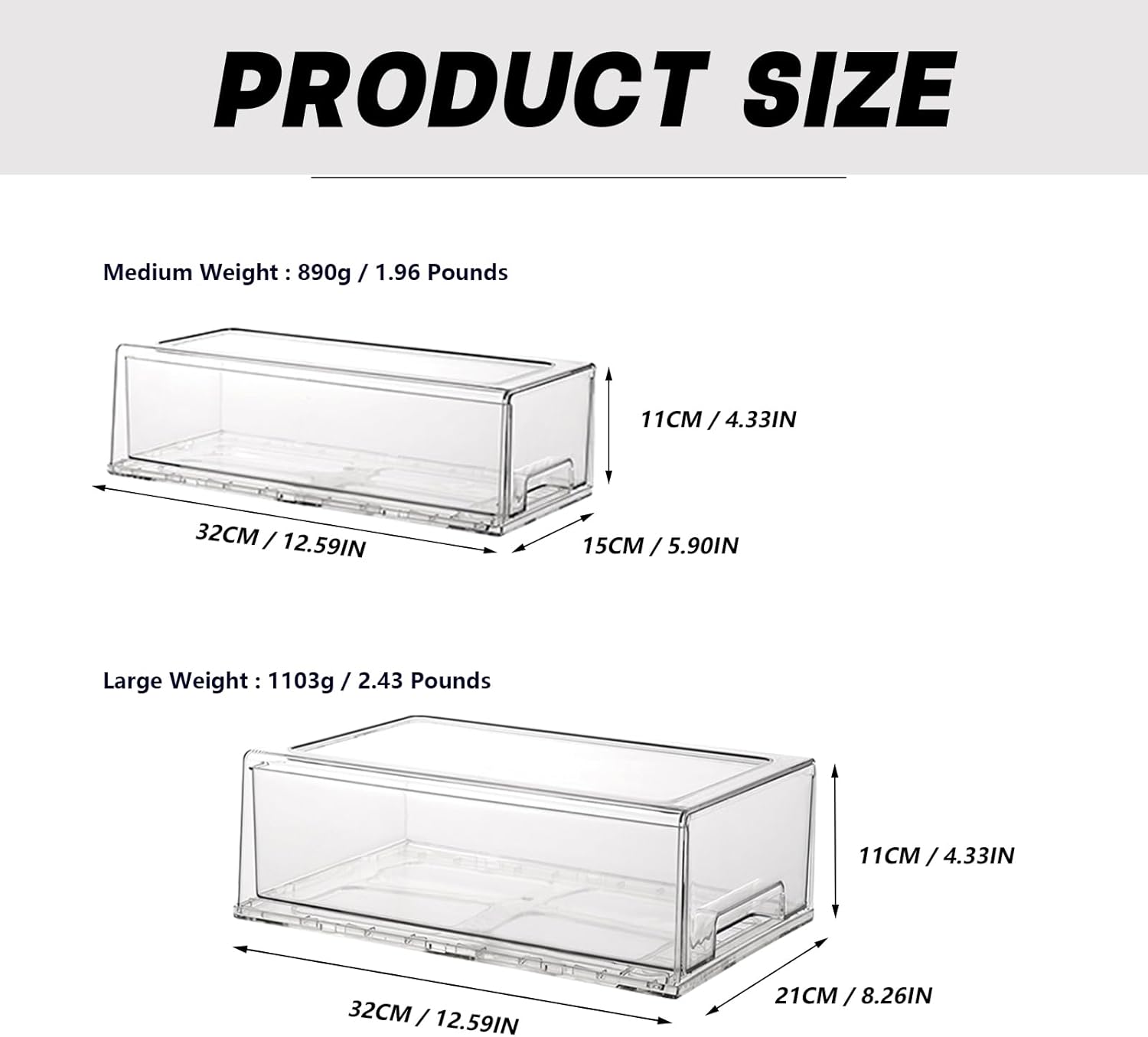Stackable storage drawers, clear pull-out organizer with handles and non-slip pads for kitchen, refrigerator,office desktop, pantry and shelves, perfect for organization and storage (2 Pack, Large)