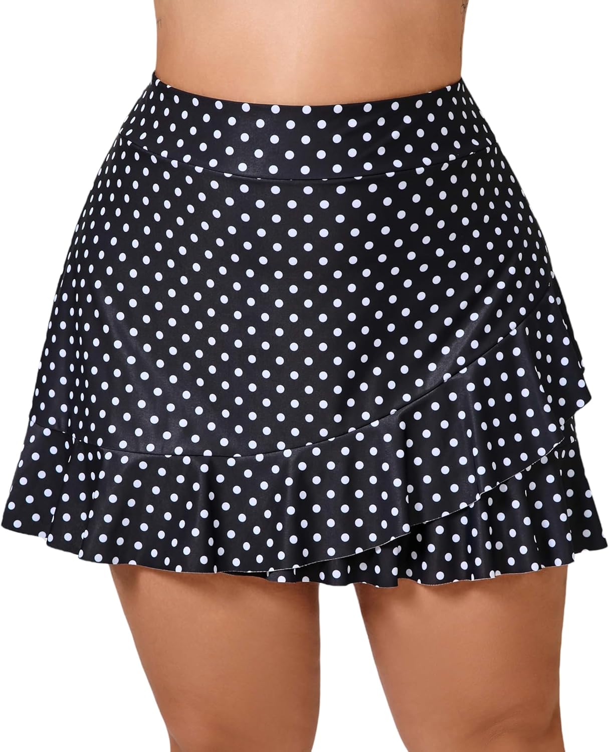 Halcurt Women's Plus Size High Waisted Ruffle Swim Skirts with Hipster Tankini Bottoms