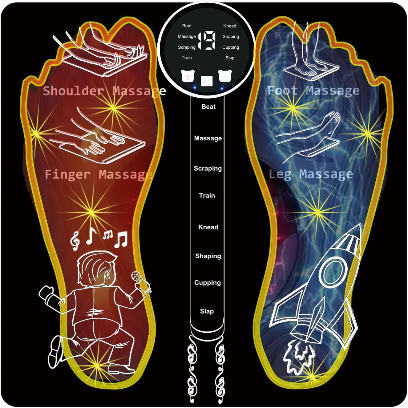 Ems Foot Stimulator has 8 modes, 19 Intensity,There is big electrode foot pad in foot conductive area for feet placed on the mat to help users to enjoy sole stimulation. 19 Intensity can meet your needs for pain relief