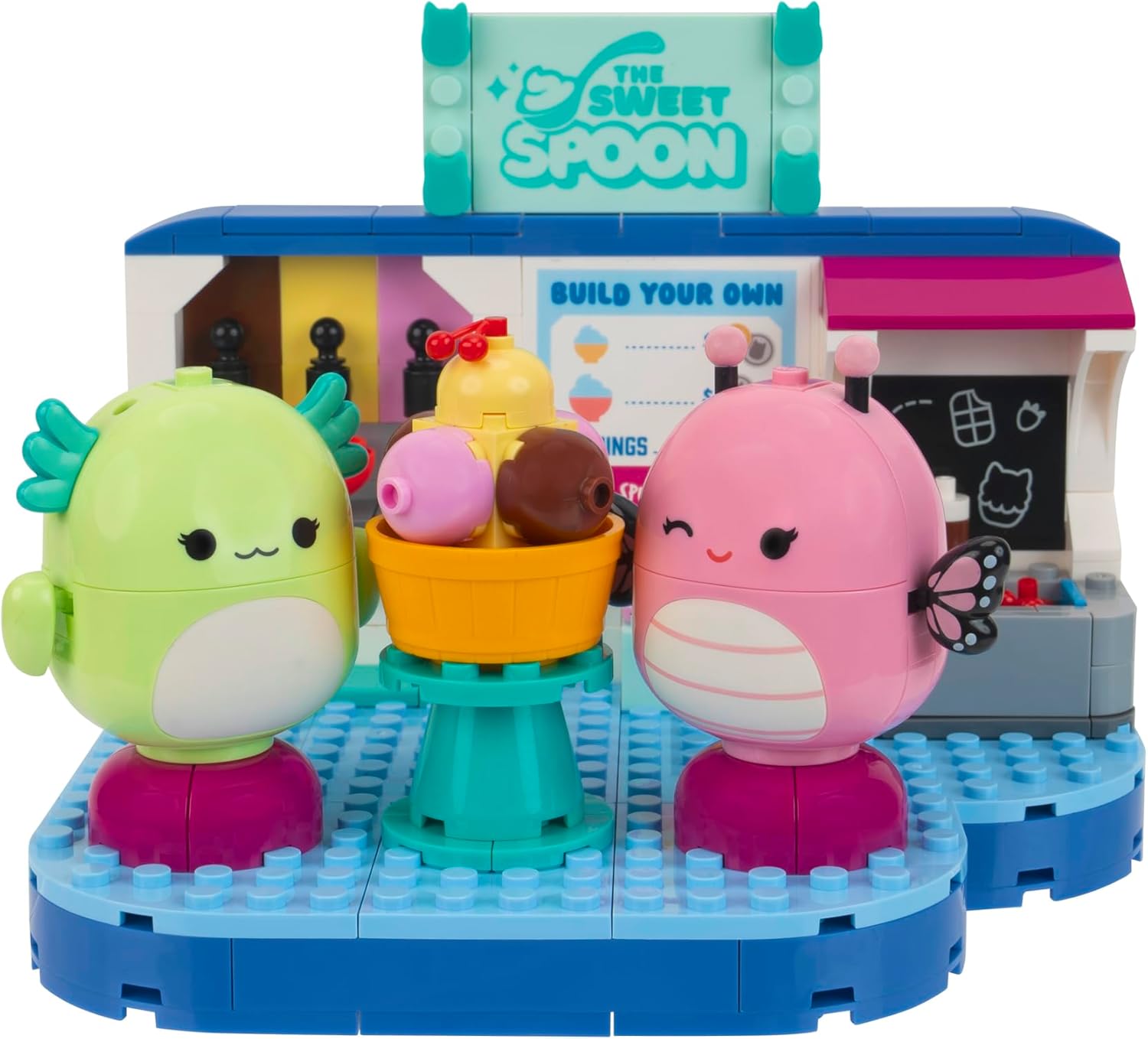 BLDR Squishmallows Frozen Yogurt Fun Building Set - Andreina The Butterfly + Mipsy The Axolotl Buildable Figures - Squishmallows Fans 8+, 0096