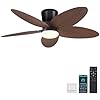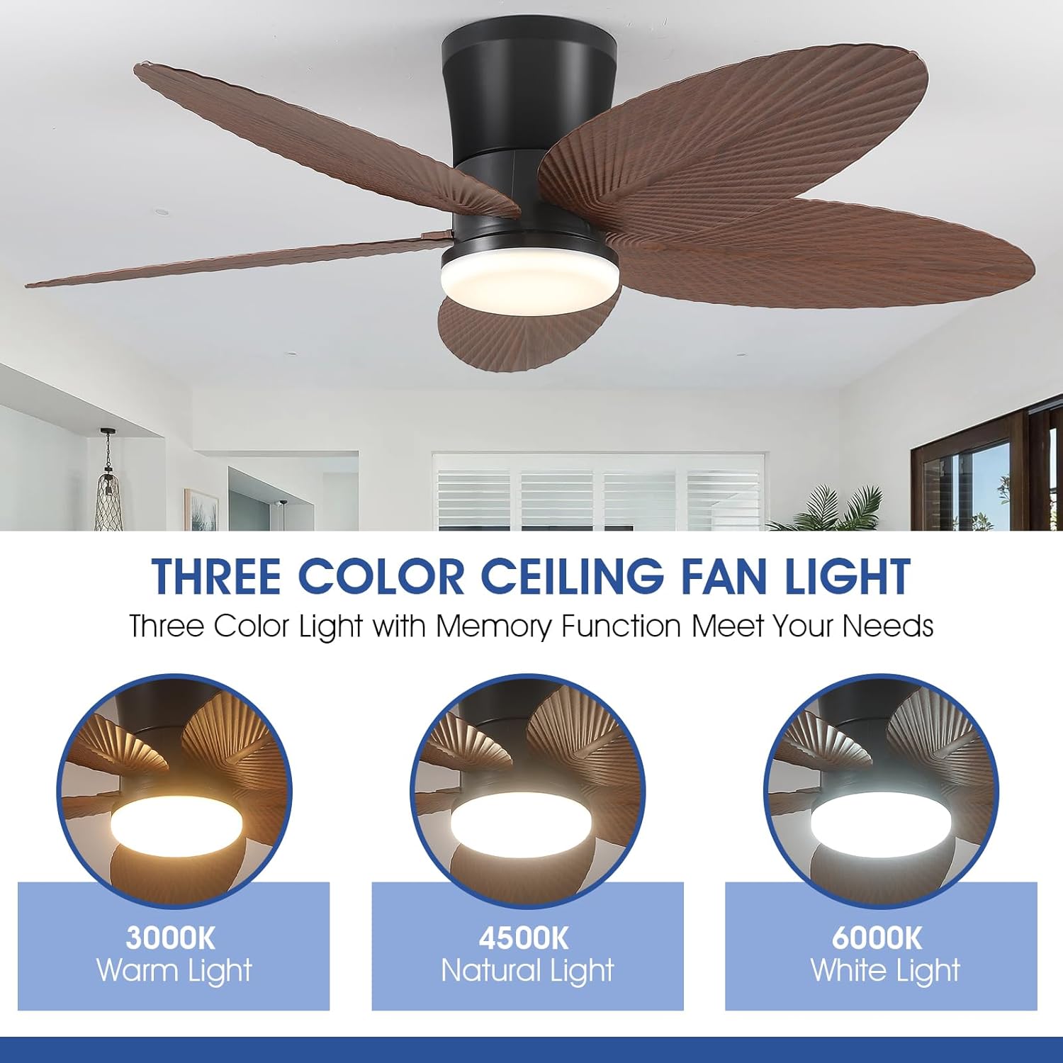 Palm Leaf Ceiling Fans with Lights-42 Tropical Ceiling Fan with Light and Remote/APP Control,Flush Mount Low Profile Ceiling Fans for Bedroom,Indoor/Outdoor Patio Use(Brown)