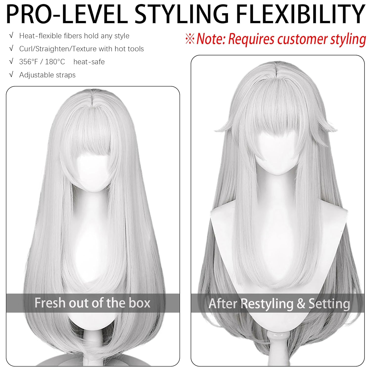 Materials and properties: cosplay wig is made of synthetic Fiber Heat Resistant fibers,high quality heat friendly fiber,support curly hair straightening style, temperature below 392 ℉ (200℃) . you can style this wig base on your need.