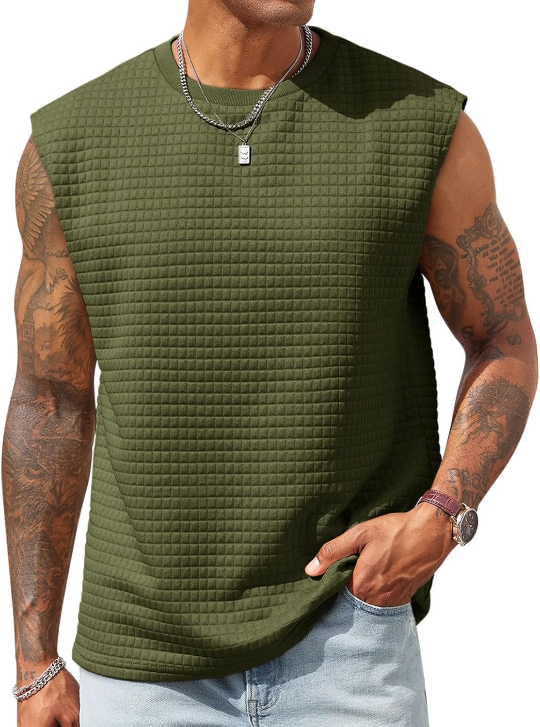 Runcati Men's Workout Tank Tops Waffle Casual Sleeveless T Shirts Gym Cut Off Beach Summer Tee