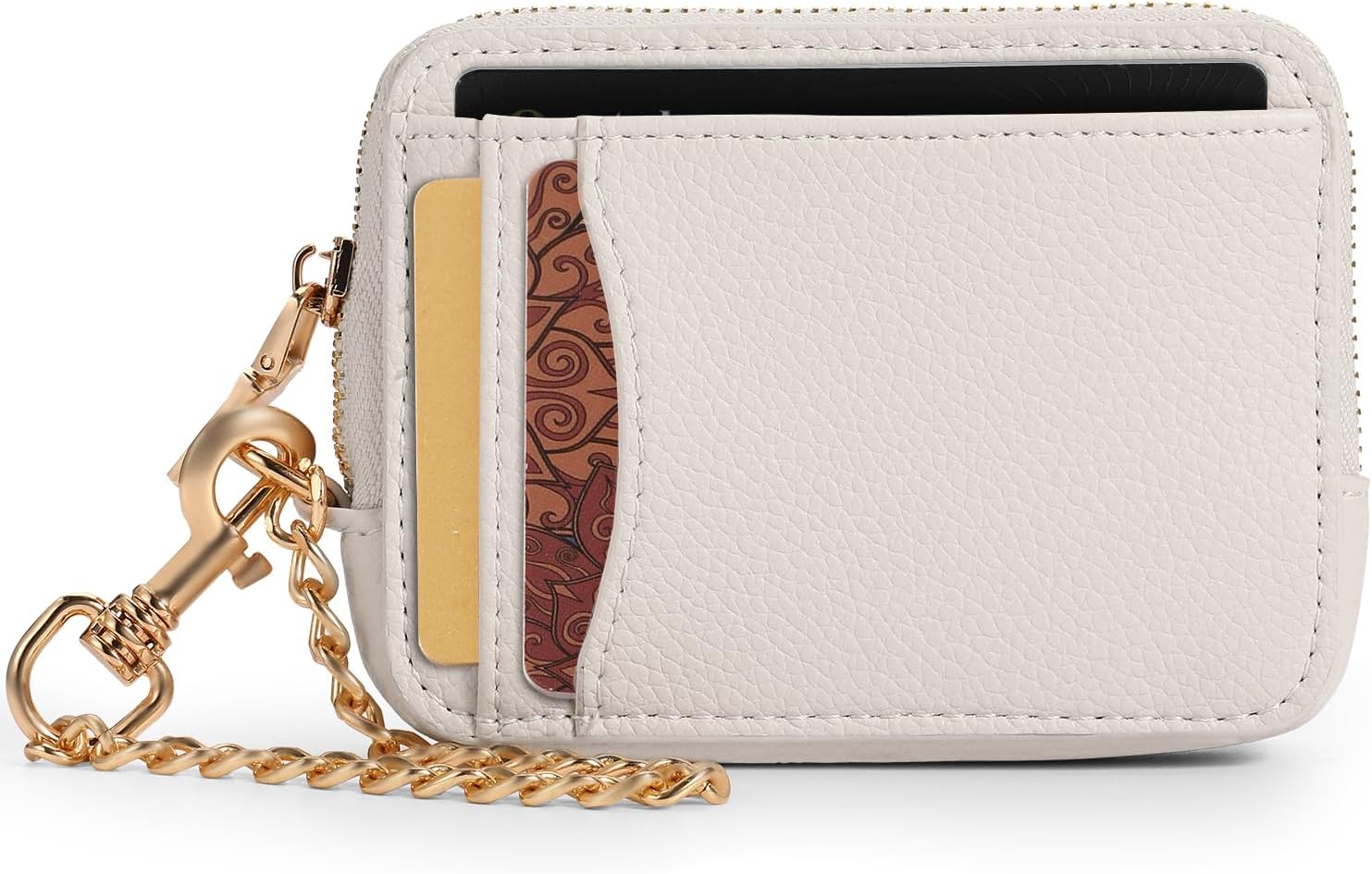 Zip Card Case, Keychain Wallet Card Holder Purse (Beige)