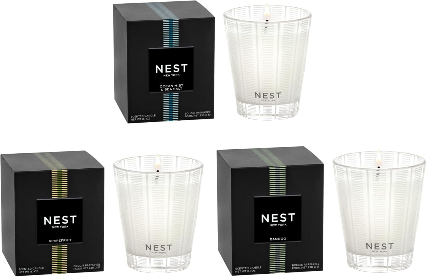 NEST New York Scented Classic Candle Trio - Bamboo, Grapefruit, and Ocean Mist & Sea Salt