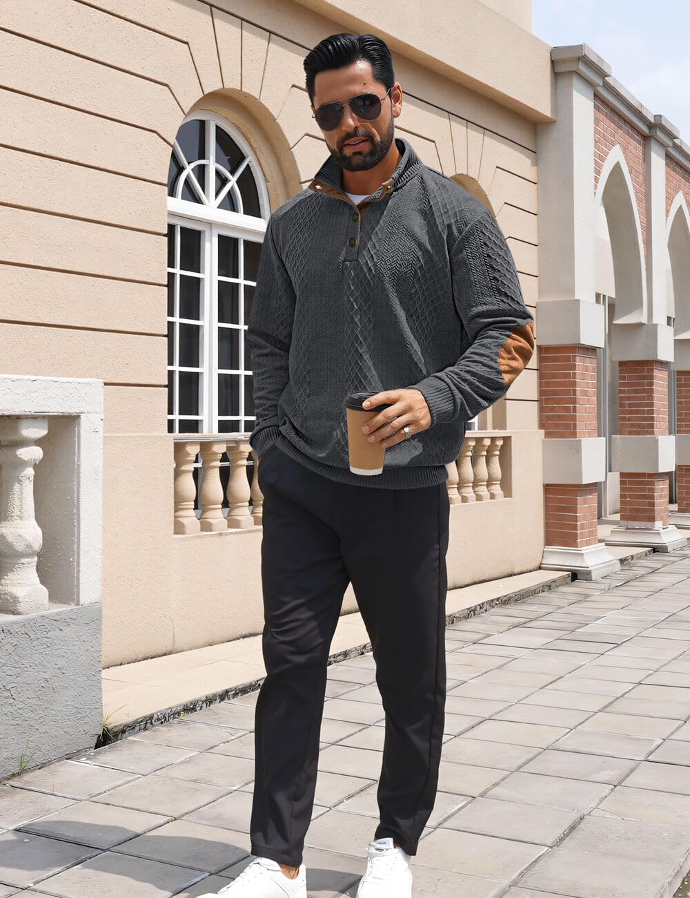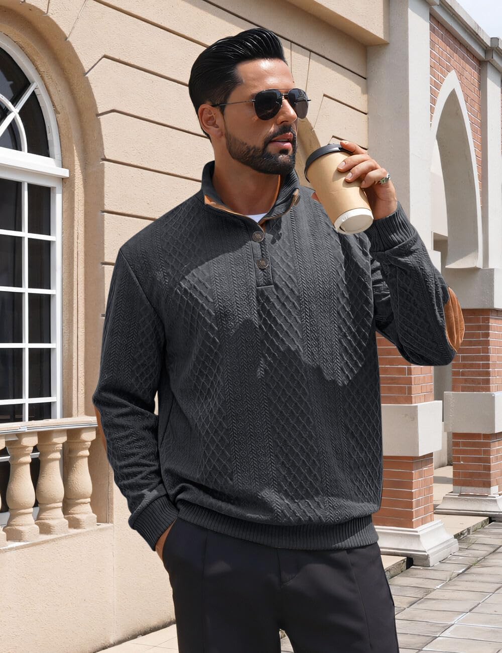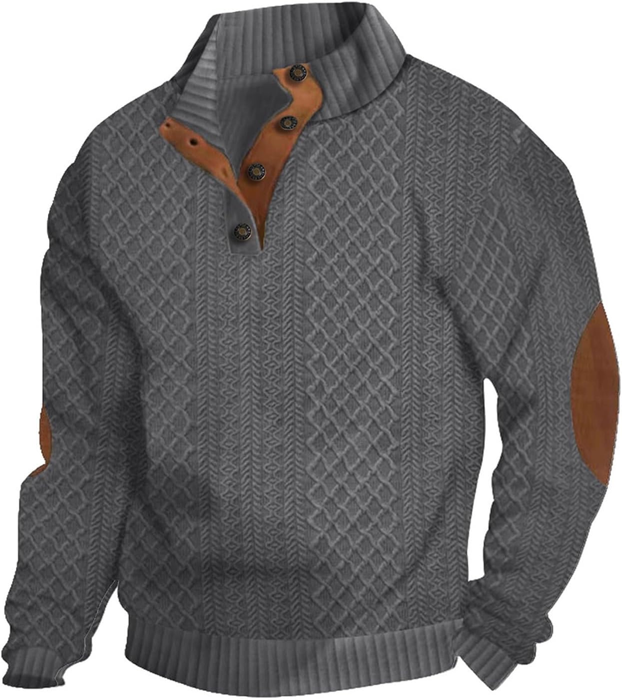 Men's Casual Sweatshirt Pullover Sweater Casual Long Sleeve Stand Collar Quarter Button Sweaters