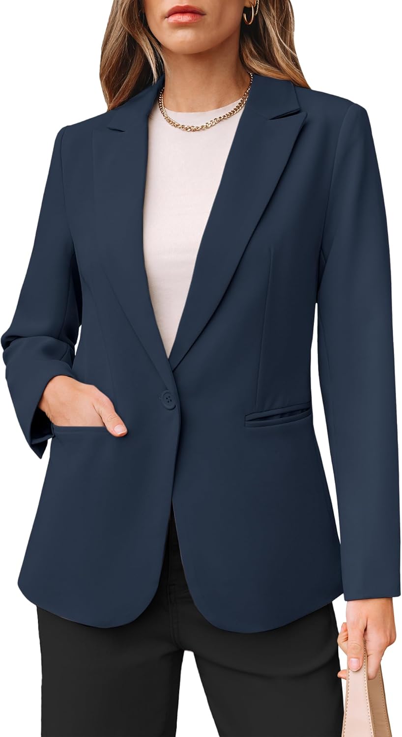 luvamia Dressy Blazers for Women Button Long Sleeve Lapel Business Casual Outfits Office Work Suit Blazer with Pockets