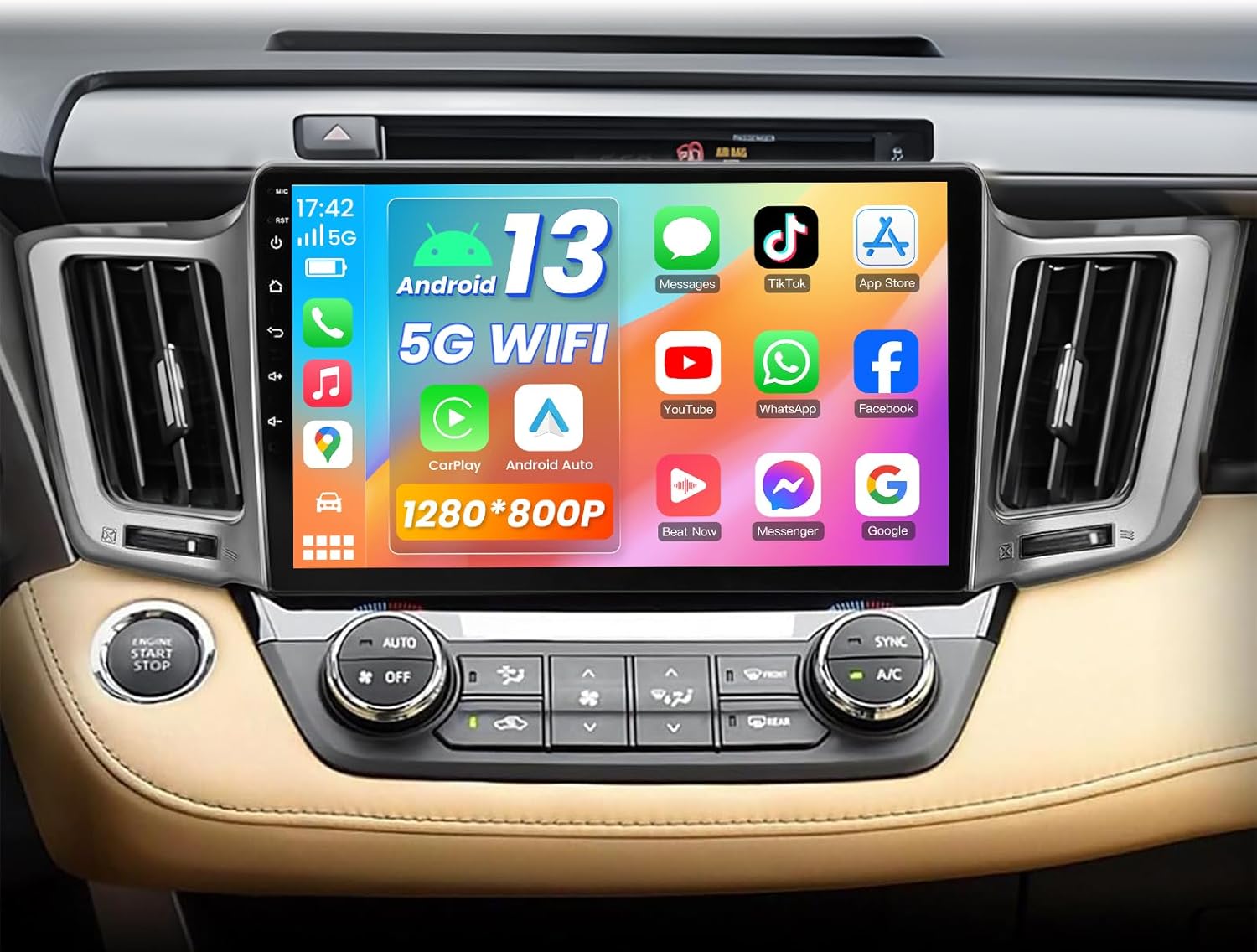 8Core 4G RAM Car Radio Stereo for Toyota RAV4 2013-2018: Upgrade 5GWiFi Android 13 Split-Screen SWC GPS Bluetooth 5.0 Touchscreen Replacement with Carplay Android Auto DSP FM/RDS Audio