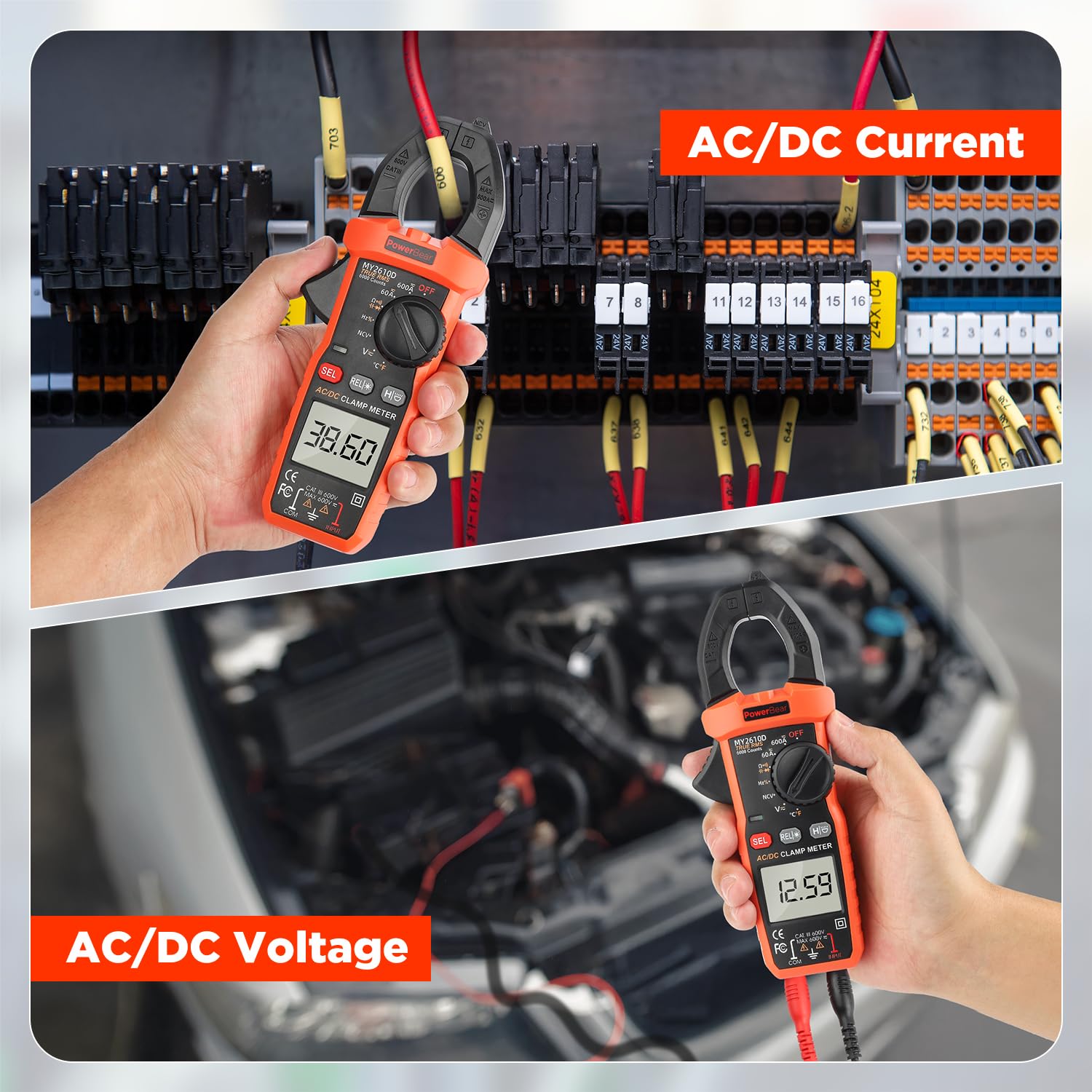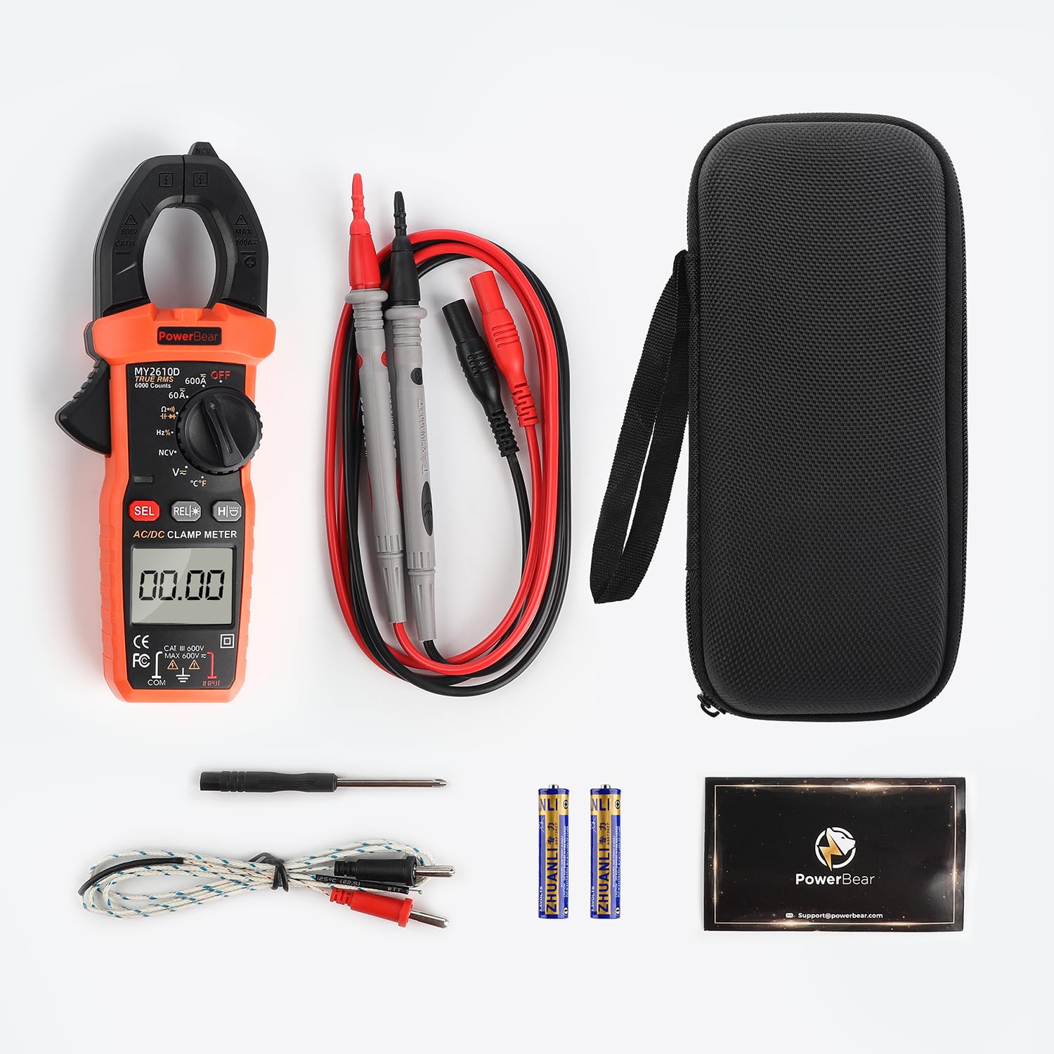 PowerBear Digital Clamp Meter Multimeter 6000 Counts for AC/DC Current & Voltage, Auto-ranging Amp Tester, Measures Resistance, Capacitance, Continuity, TRMS, Temperature, NCV Detection