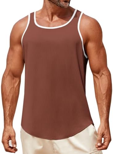 Runcati Mens Sleeveless Tank Tops Workout Muscle Gym Knitted Shirt Athletic Bodybuilding Slim Fit Ribbed T Shirts