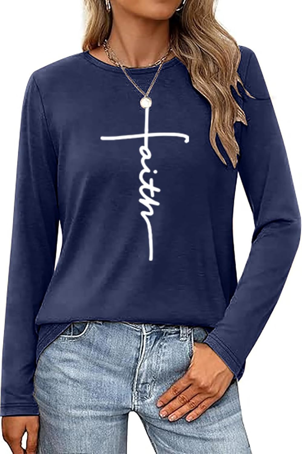 Faith Shirts for Women Letter Printed Casual Long Sleeve Tee Top