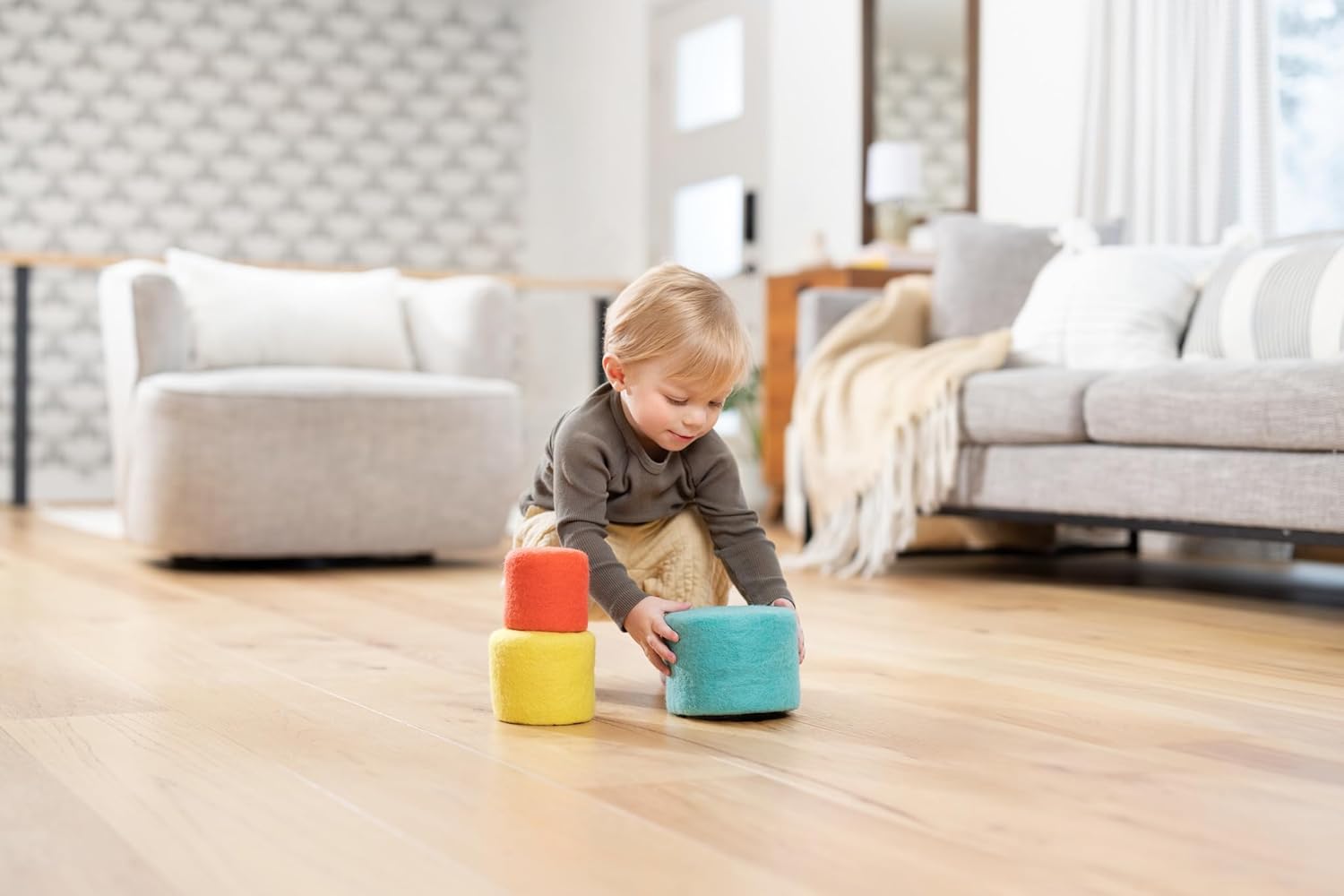 Set of 3 felt baskets that are perfect for your toddler starting at 13 months