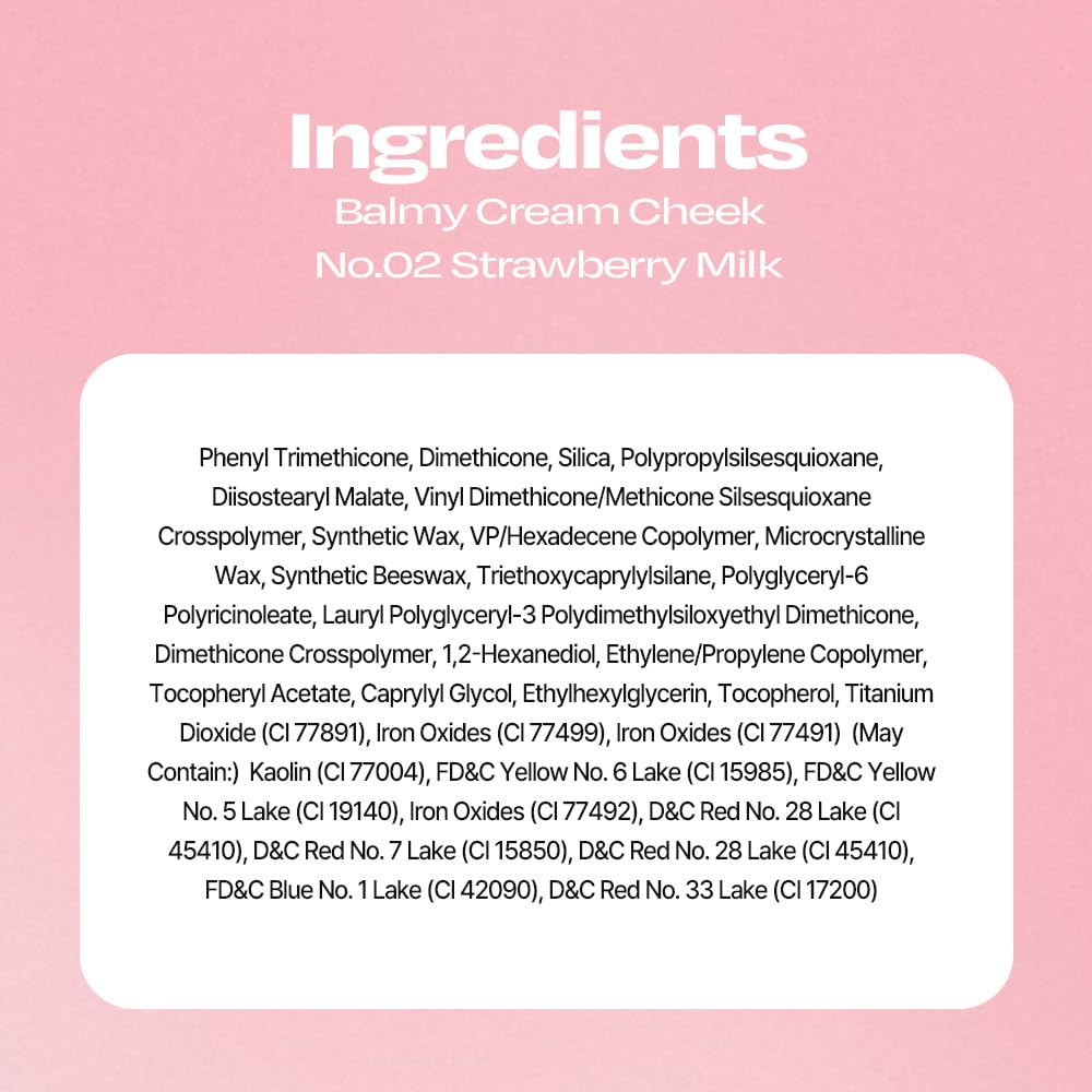 Balmy Cream Cheek | Lightweight, Natural Finish Cream Blush with Blurring Effect | 2.5g (No.2 Strawberry Milk)