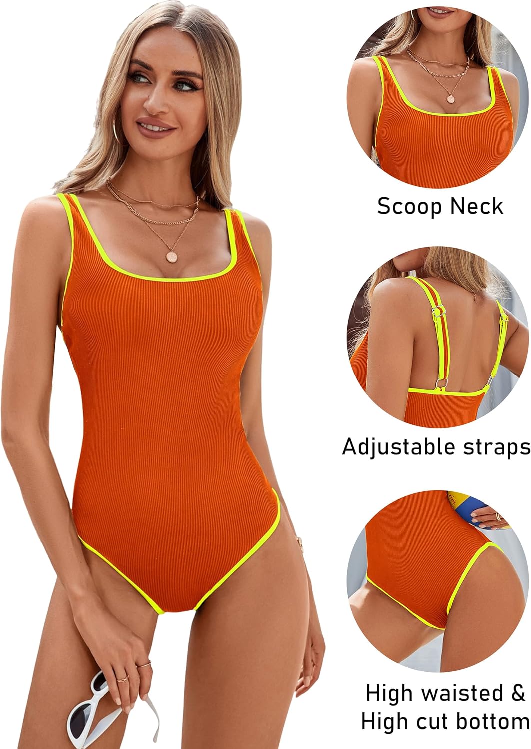 BMJL Women's One Piece Swimsuit Sports Adjustable Strap Bathing Suit Color Block Ribbed High Cut Swimsuits