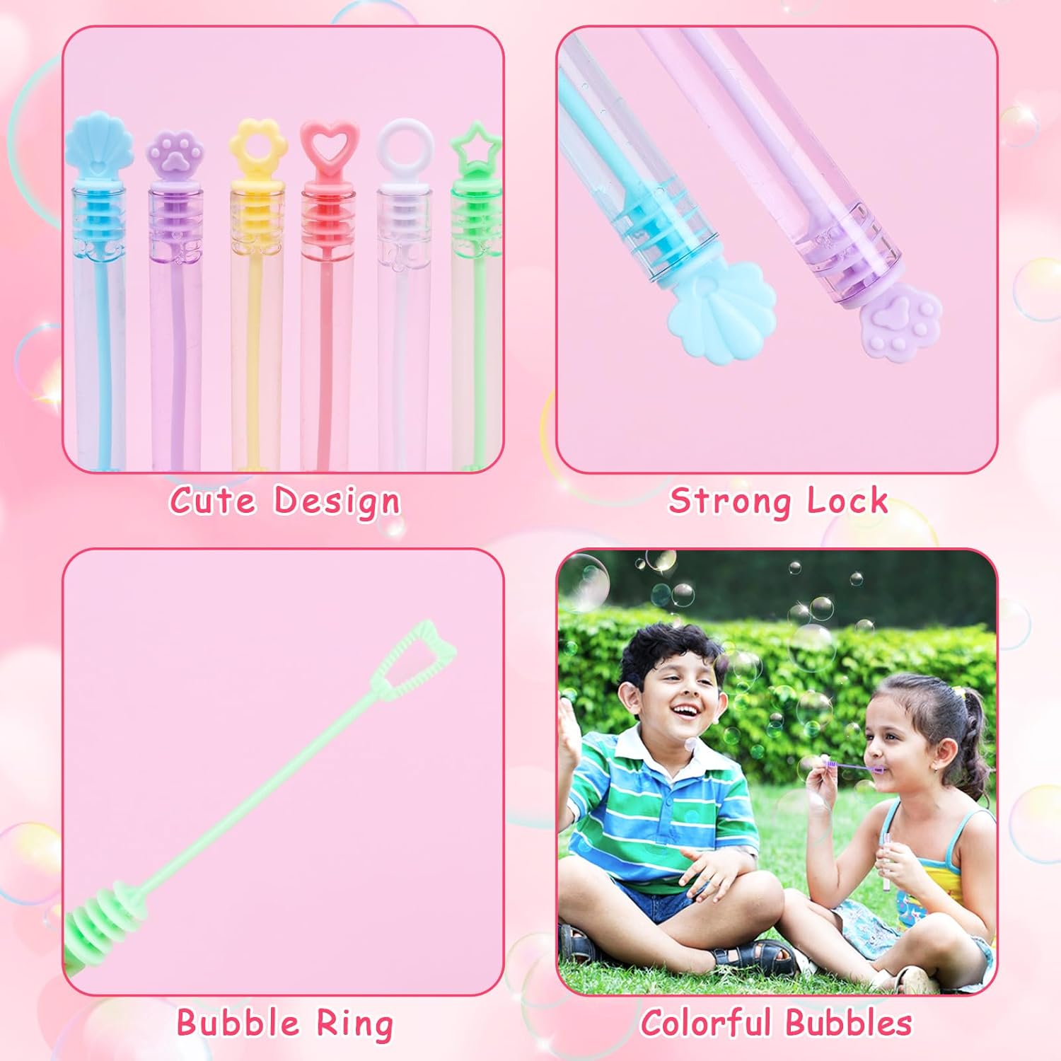 Value Pack:You will receive 36 pack bubble wands in 6 pastel rainbow colors(pink, yellow, purple, blue, green, white) and 6 different style(Star, Flower, Circle, Shell, Heart, Cat Feet).Cute design can satisfy your needs for summer events.