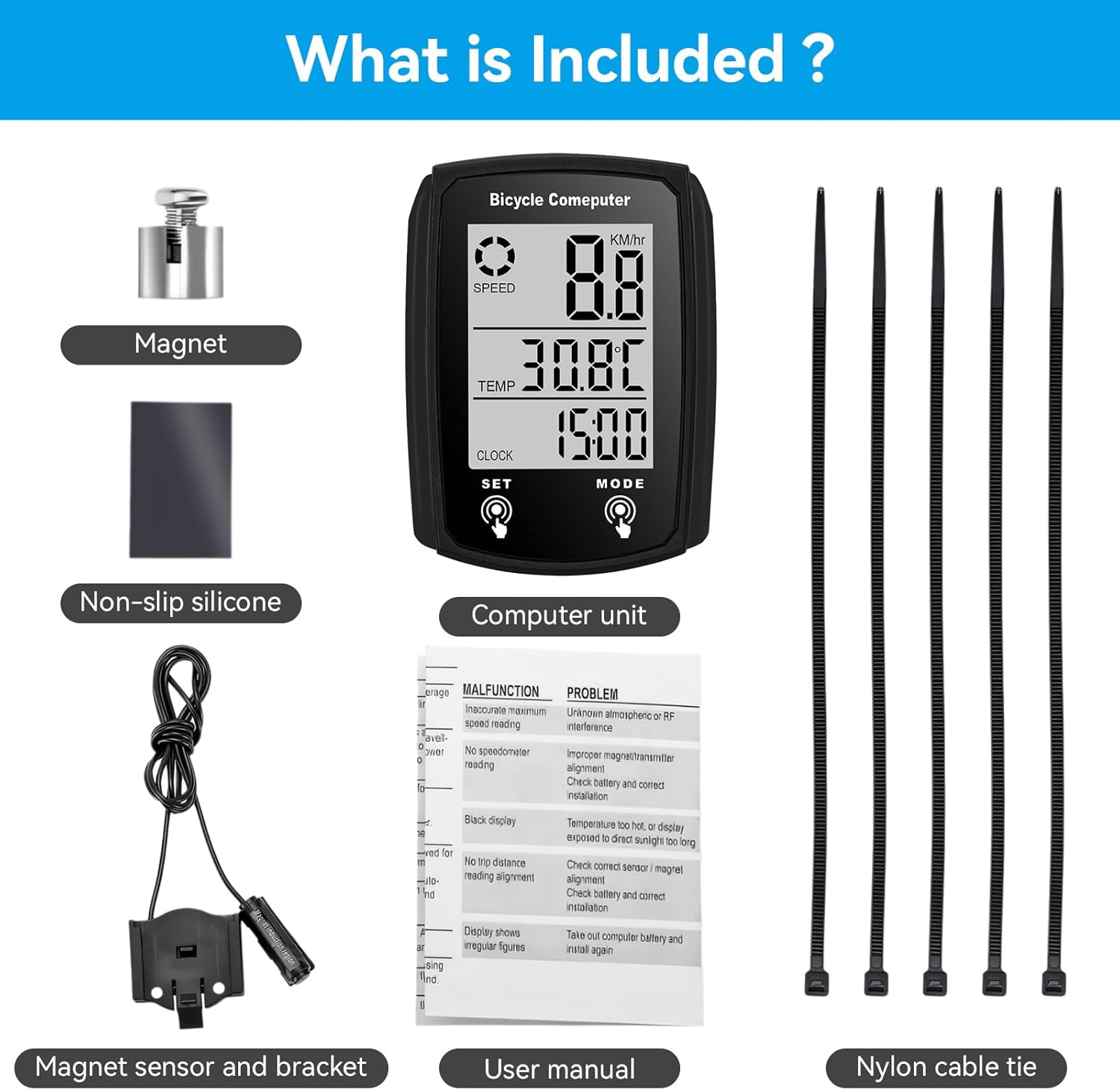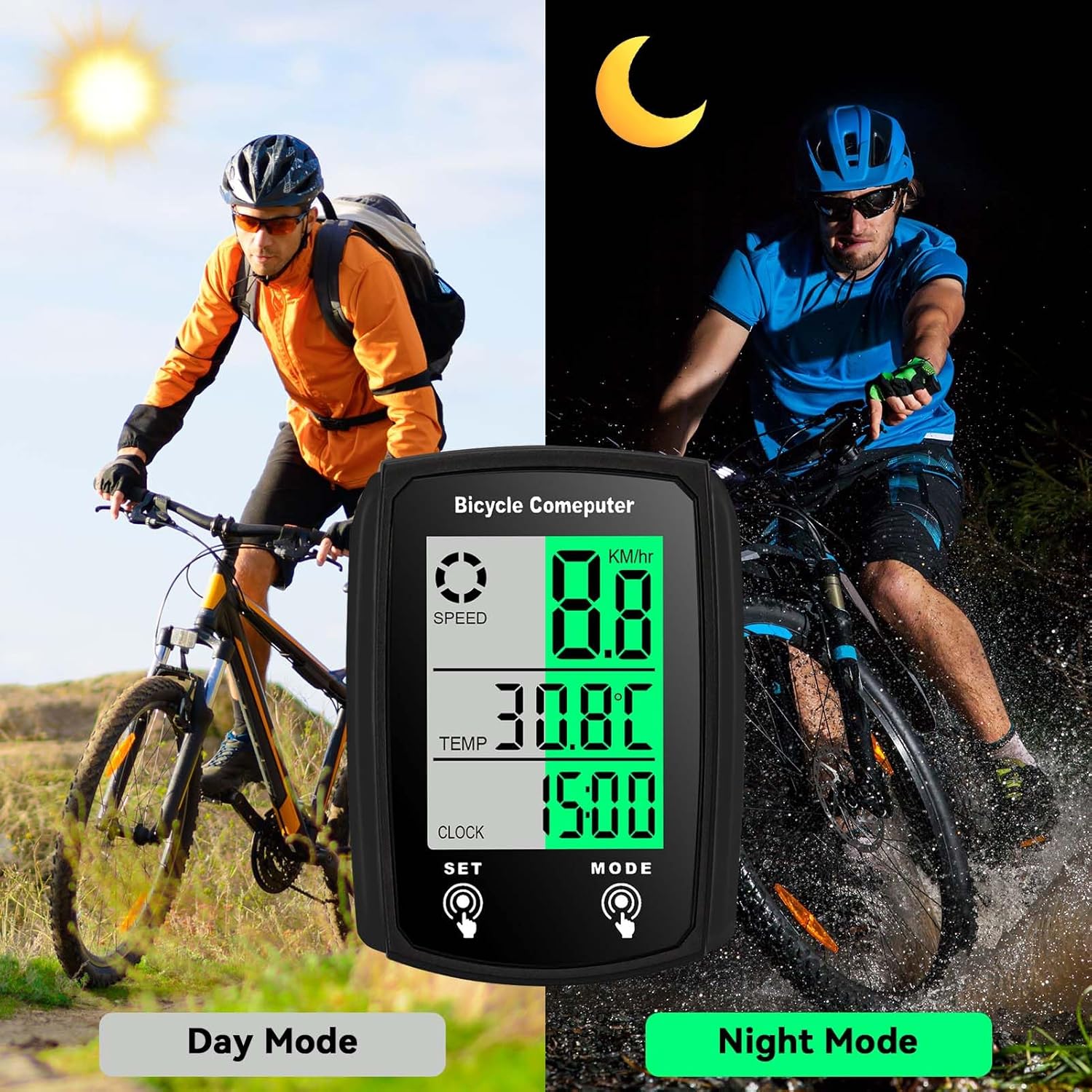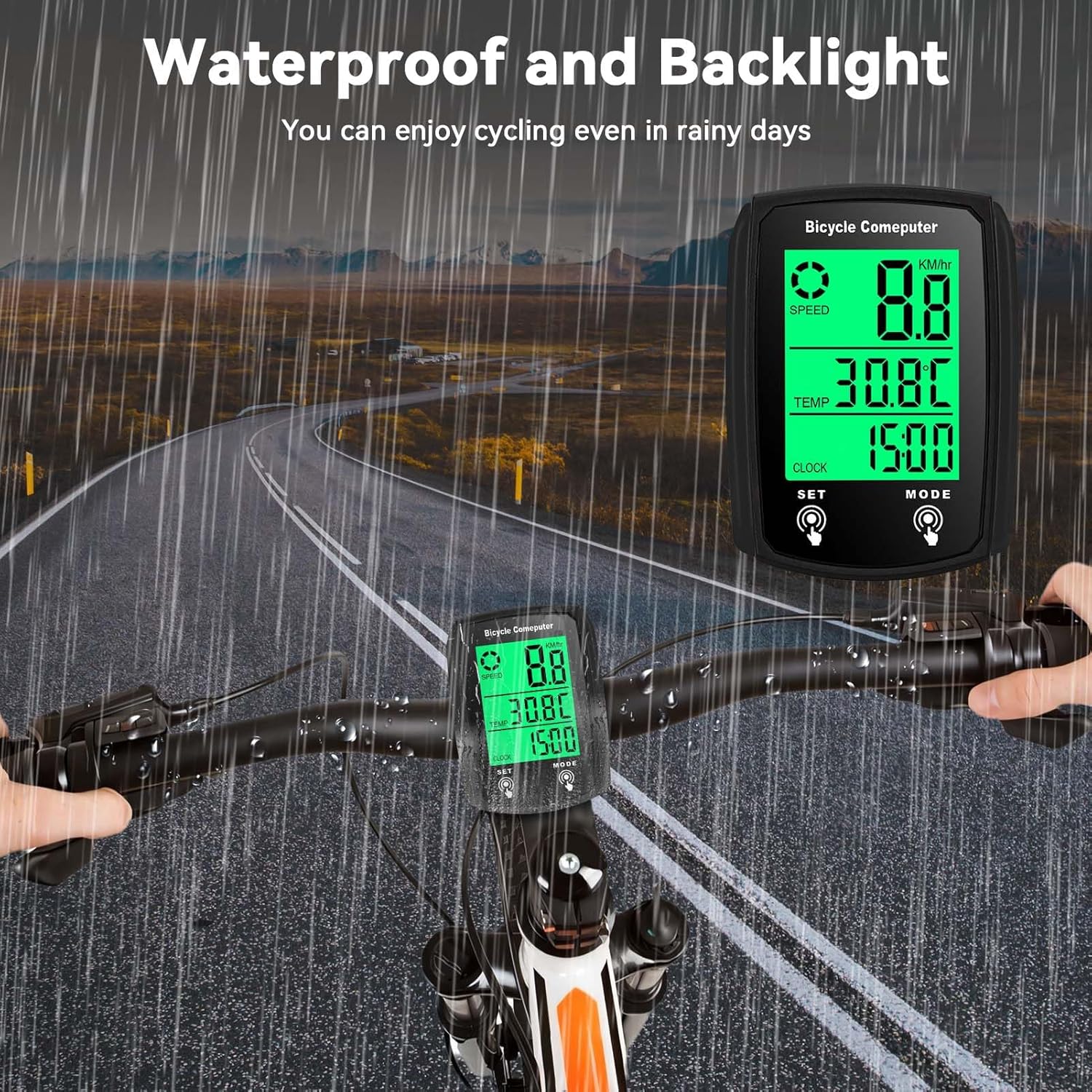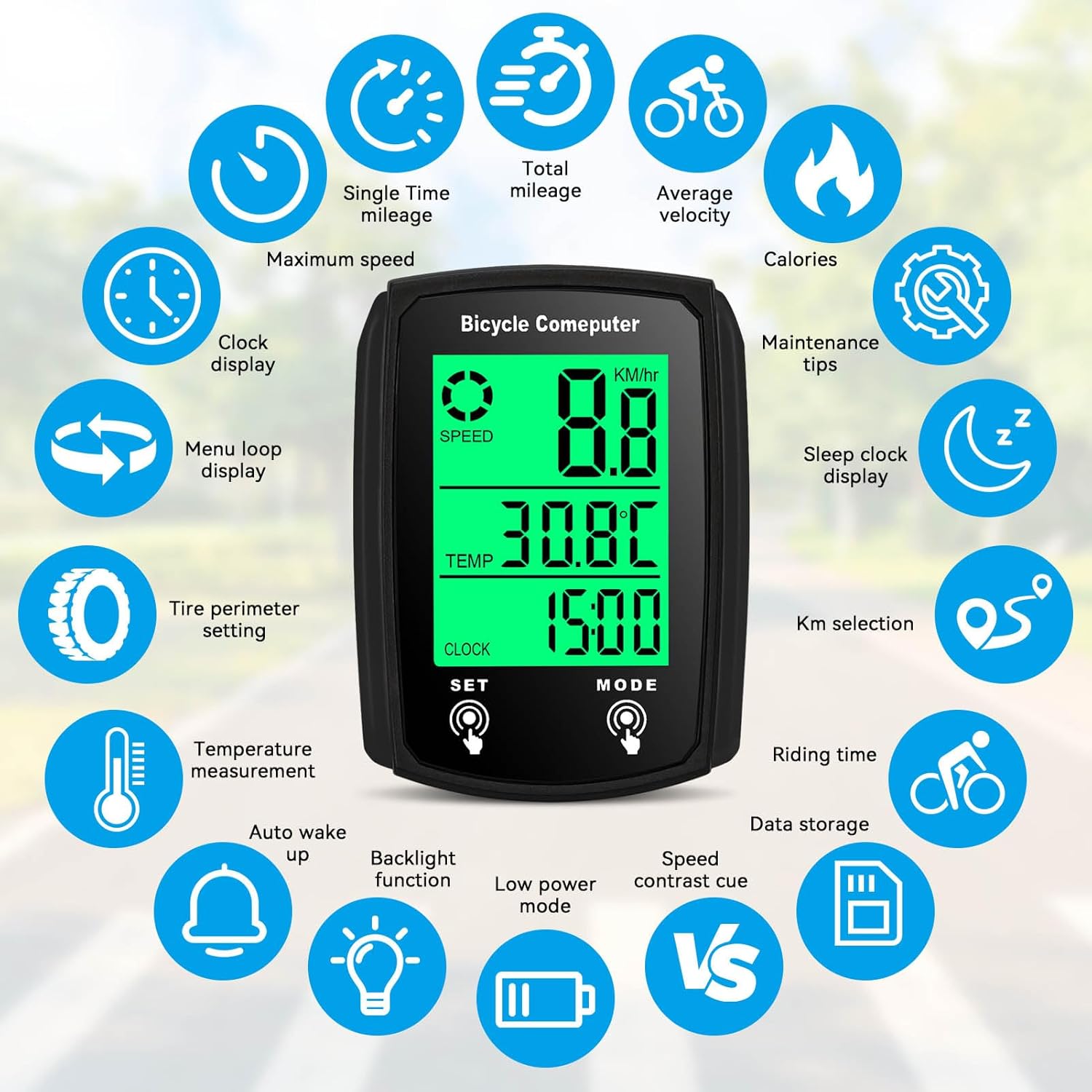 MULTI-FUNCTIONS: Cycle Computer measures your riding data like Speed Average, Maximum and KM hour, Riding time and distance. Added new function like record calories statistics, temperature, etc. Small and portable, IPX6 waterproof design