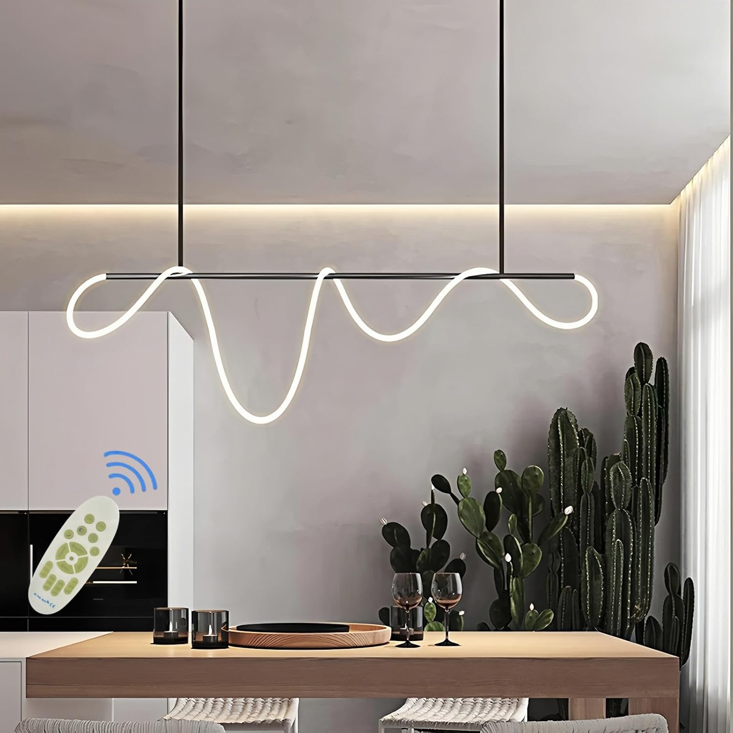 Dimmable Led Pendant Lights Kitchen Island:Chandelier Modern Comes With A Practical Remote Control To Make You Have Complete Control Over The Ambiance Of Your Space. Adjust The Color Temperature Seamlessly From A Soothing Warm White (3000k) To A Crisp Cold White (6500k) Light, Catering To Your Desired Mood.The Brightness Levels Are Also Customizable.Thanks To Its Intelligent Memory Function,The Candelabros De Techo Remembers Your Last Settings Even When Switched Off Via Remote Control