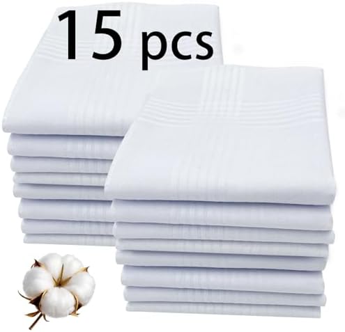 Made from:100% Soft Combed Cotton White Hankie.15 Pieces handkerchiefs is packaged with white bowknot.more durable, soft, absorbent, thicker and heavier. Great choice for allergy season.16'' x 16'' Each
