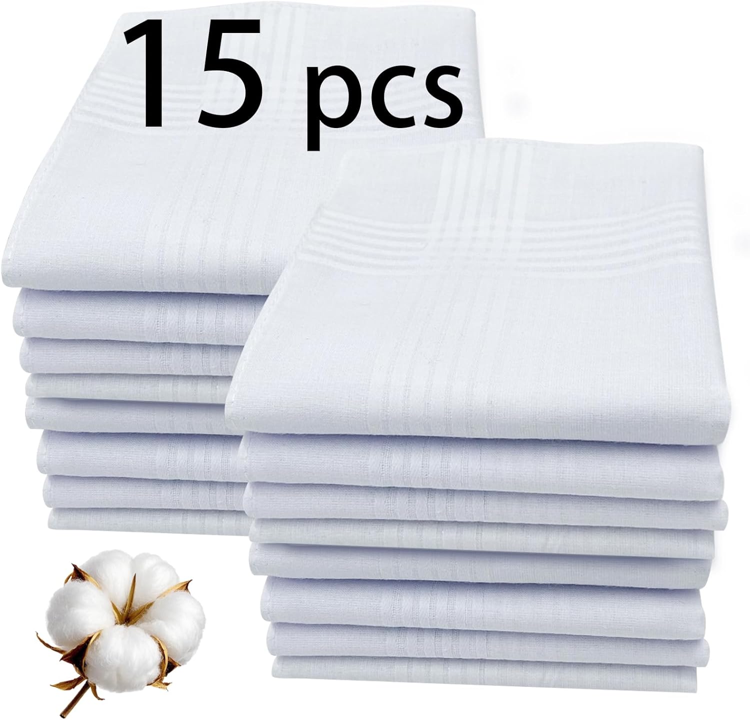 White Handkerchiefs for Men,100% Cotton Soft Cotton Handkerchief for Men, 16x16 bulk Mens Handkerchiefs
