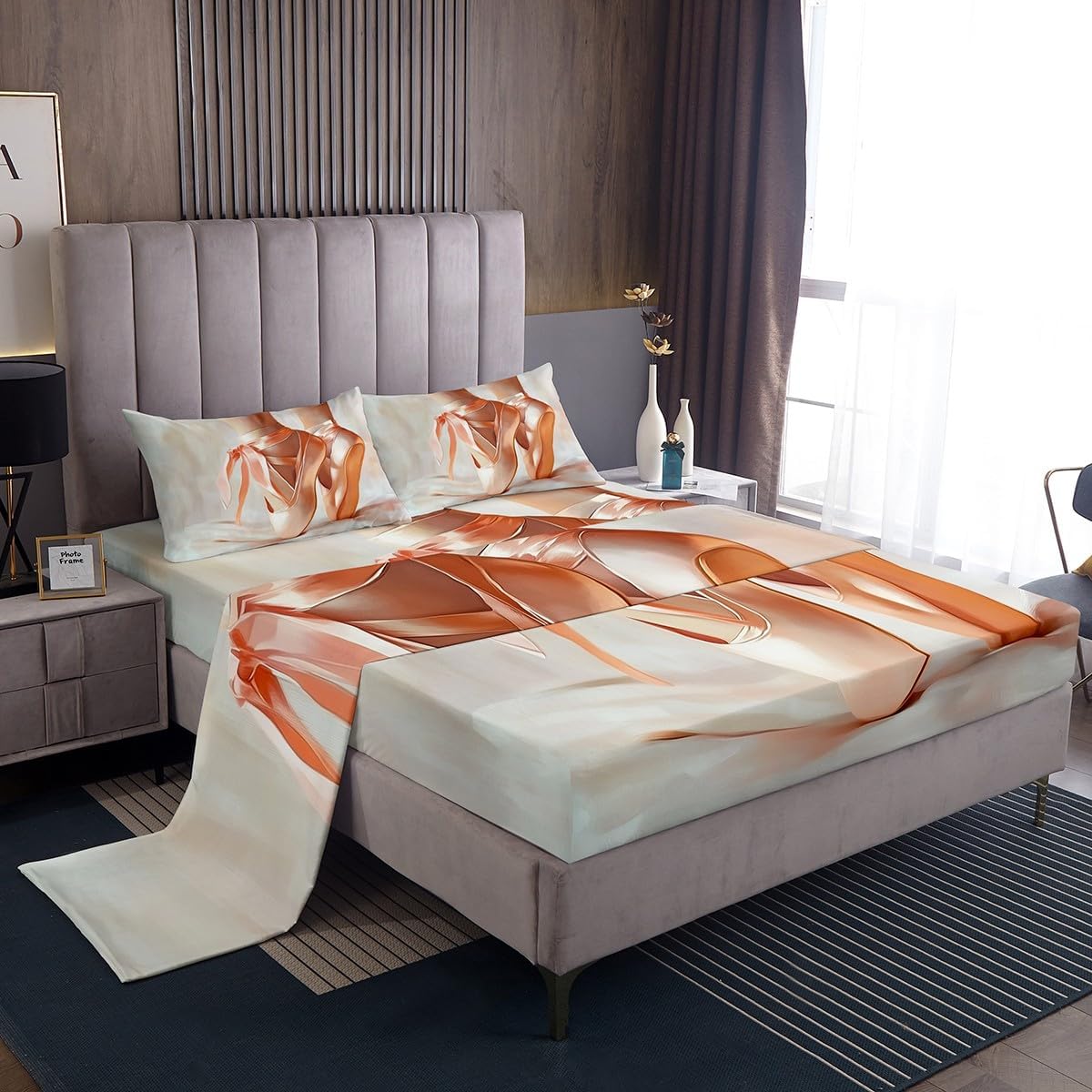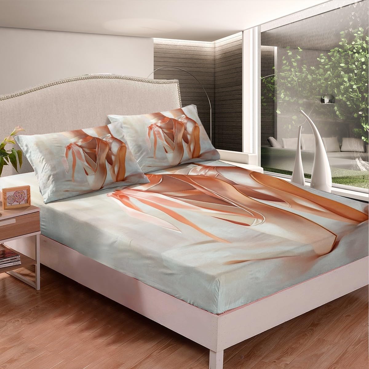 Castle Fairy Modern Ballet Shoes Sheet King Size Ballet Dancer Art Bedding Set Artistic Gymnastics Kids Teens Girls Girly Bed Sheet Set 4pcs(Fitted + Flat + 2 Pillowcases)