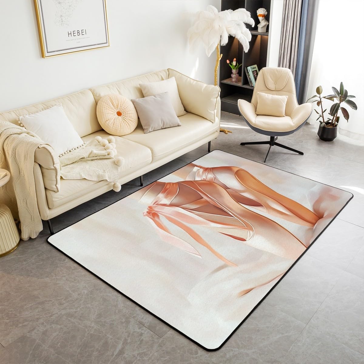 Modern Ballet Shoes Living Room Rugs 5x7 Ballet Dancer Art Area Rug for Kids Teen Artistic Gymnastics Carpet Runner Non Slip Girly Elegant Decorative Accent Rug Bedroom Decor