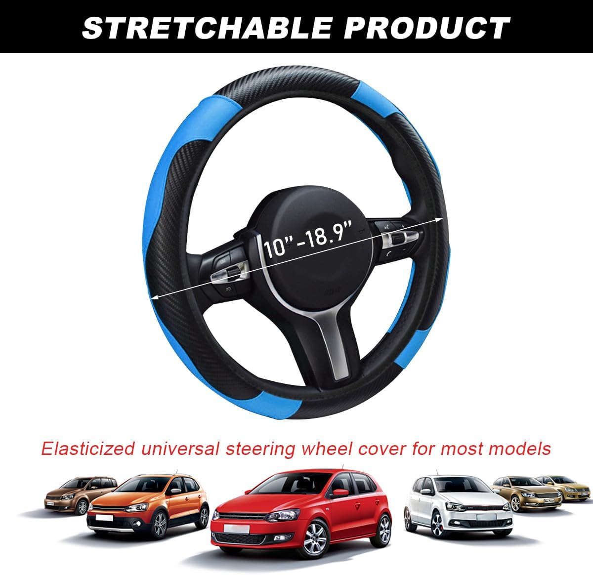 Car Steering Wheel Cover, 15 Inch Carbon Fiber Leather Stitching Color Steering Wheel Protector, Anti-Slip Elastic Breathable Steering Wheel Cover Stylish Decor for Most Cars (Black&Blue)