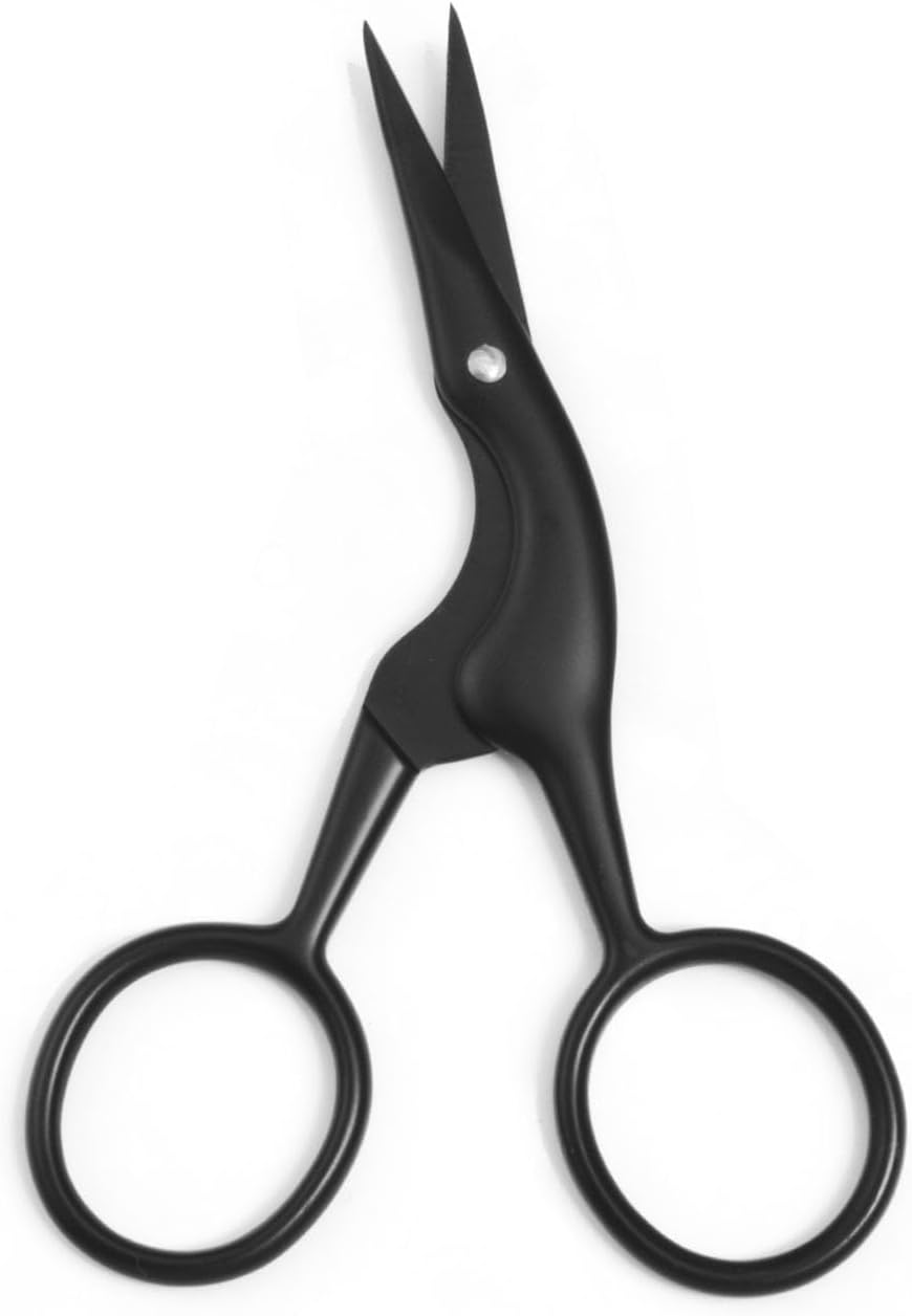 3.6 Inch Sewing Embroidery Scissors with Artificial Leather Cover Stainless Steel Stork Scissors Vintage Embroidery Scissors for Needlework, Manual Sewing Handicraft (Black A), HSW030S