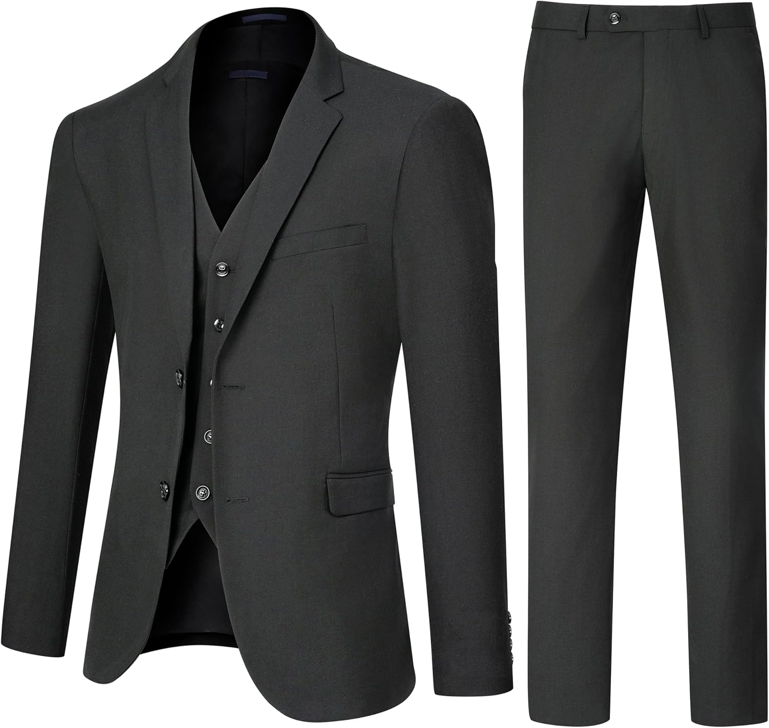 Men's Slim Fit 3 Piece Suit Set, Two Button Solid Blazer Jacket with Multi-Functional Pockets for Business/Party