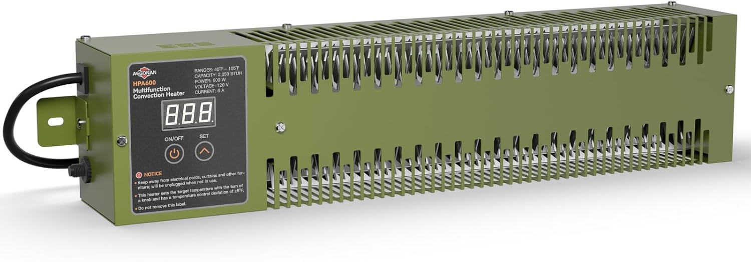 【Specifically for Freeze Protection】AEGONAN electric pumphouse and utility heaters engineered for specifically for freeze protection. This heater ensure the uninterrupted functionality of critical equipment even in the harshest cold weather conditions. This heater is simple and reliable with no moving parts to wear out or maintain, can be run all winter long at remote locations, perfect for pump houses, utility rooms, relay stations, construction sheds, and more.