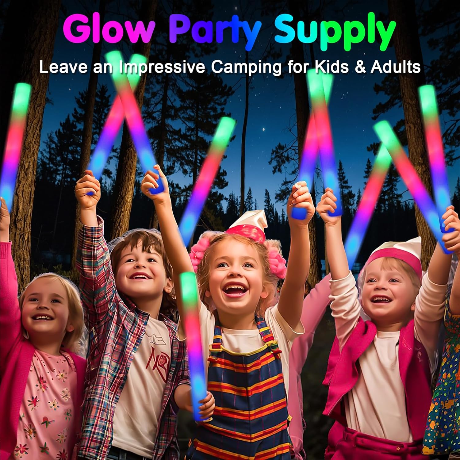 Long Lasting Multi-color Foam Glow Sticks - Each LED foam stick emits 3 colors of light and comes with 3 batteries, which can last for more than 8 hours. Bring your party a more fun glowing experience.