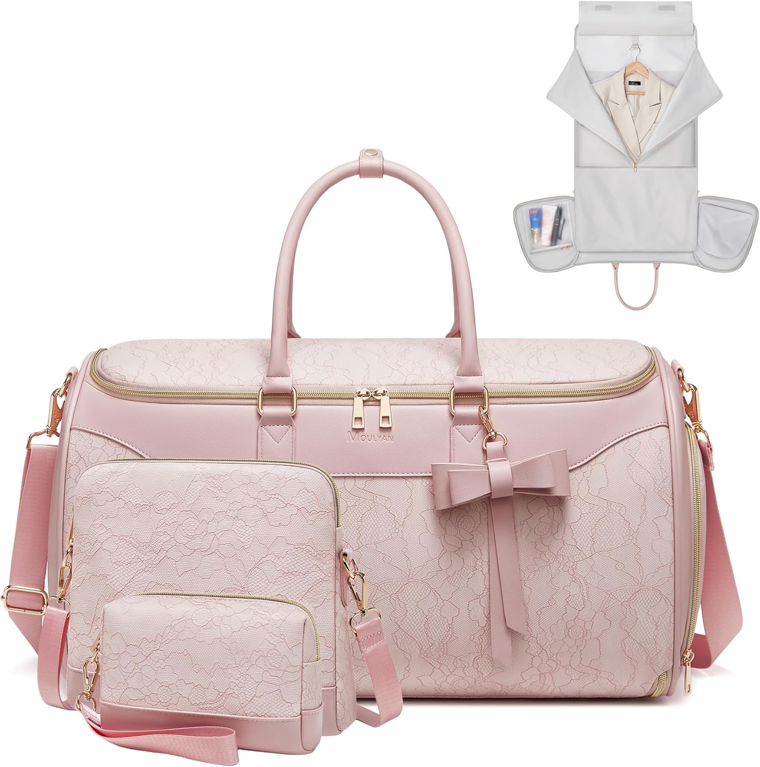 Garment Bags for Travel,Leather Convertible Garment Duffle Bag with Toiletry,Waterproof Carry On Garment Bag with Shoe Compartment,2 in 1 Suit Travel Bag for Women Weekender 3pcs Set