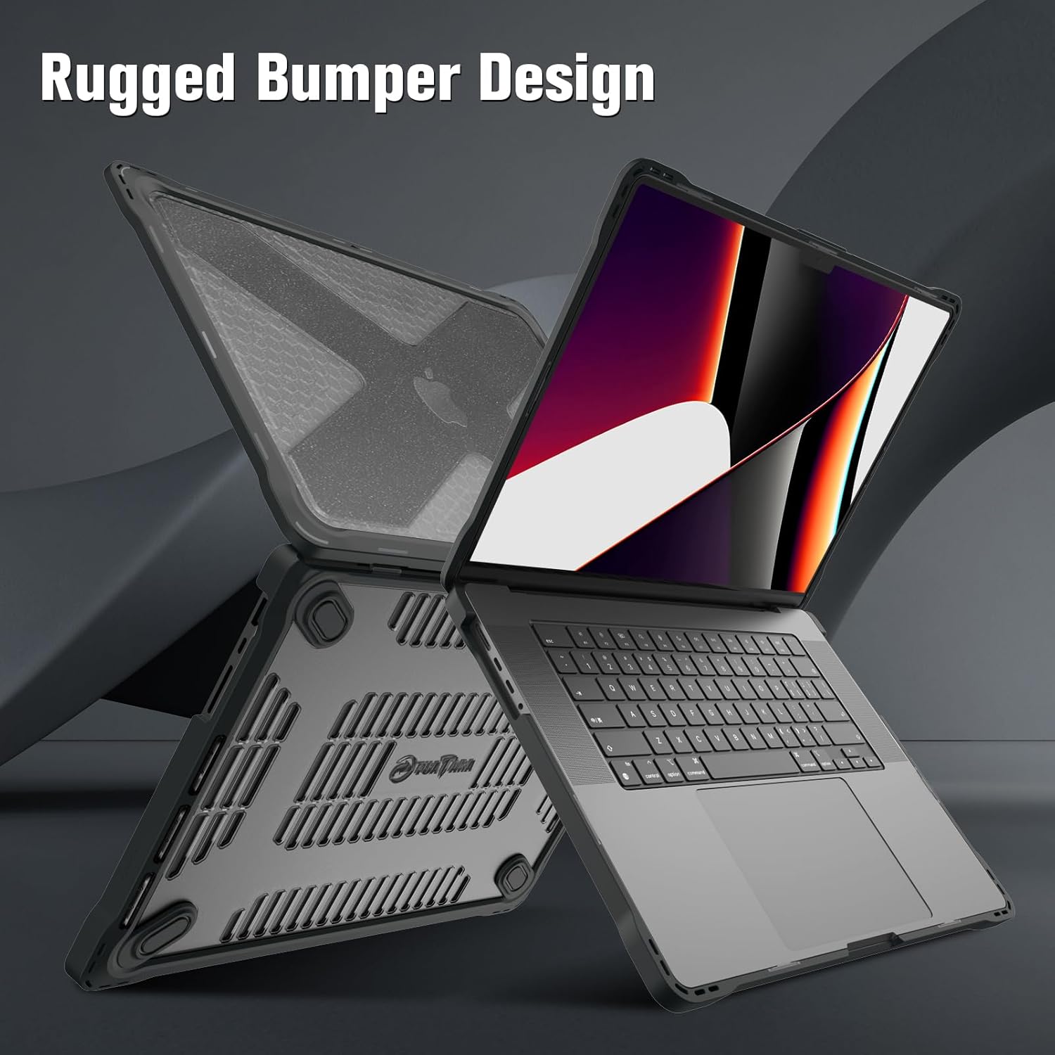Heavy duty hard shell case with flexible TPU bumper offers all-round protection for your Macbook. Protects your machine against accidental scuffs, drops, falls, scratches and other damages.