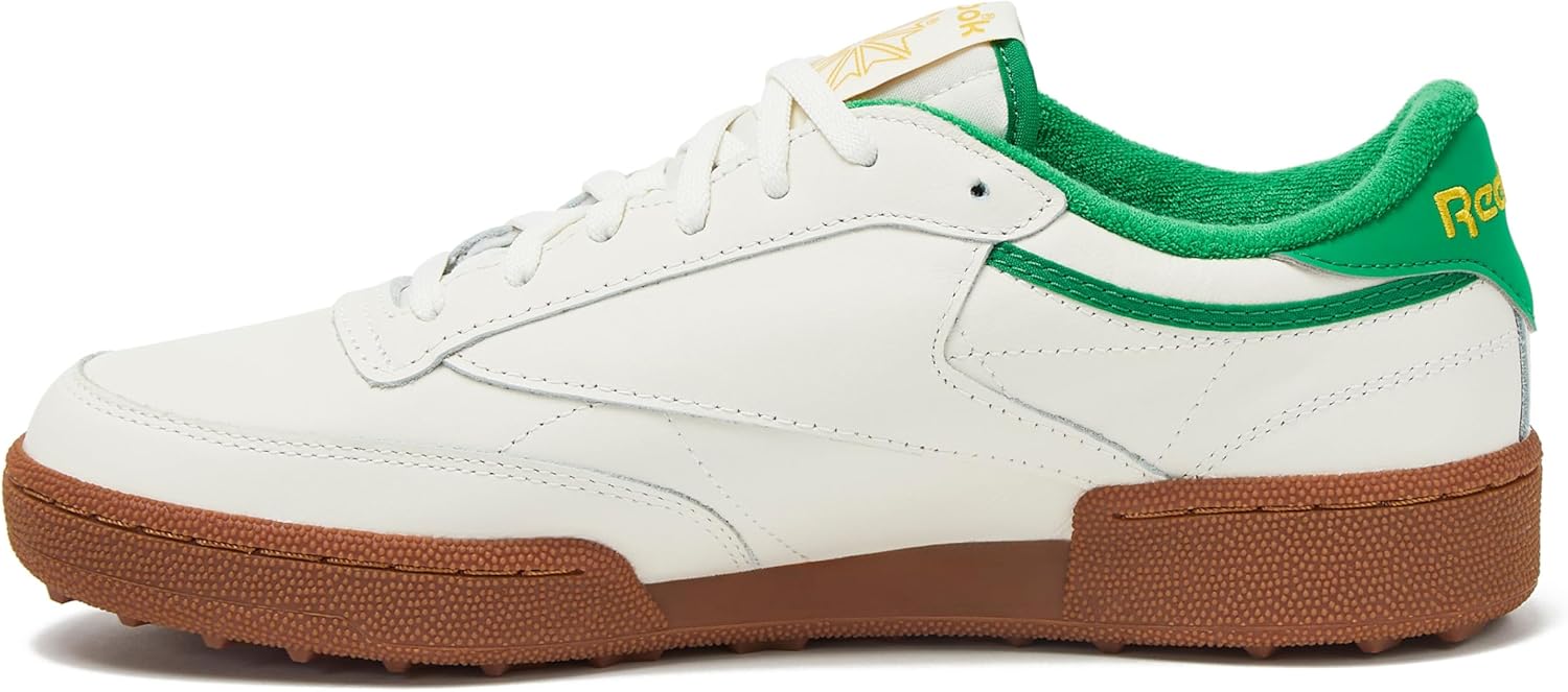 The all new Reebok Club C Golf mens spikeless golf shoes are here for your best game yet. They feature our classic Club C 85 upper paired with a durable golf specific outsole with 6mm lugs to keep you grounded. The premium smooth leather upper combined with the soft terry lining and removable insole built with arch support makes these the most comfortable pair of golf sneakers you've had yet. Available in off white and green, off white and navy blue, or classic white mens golf shoes in size 6.5-14.
