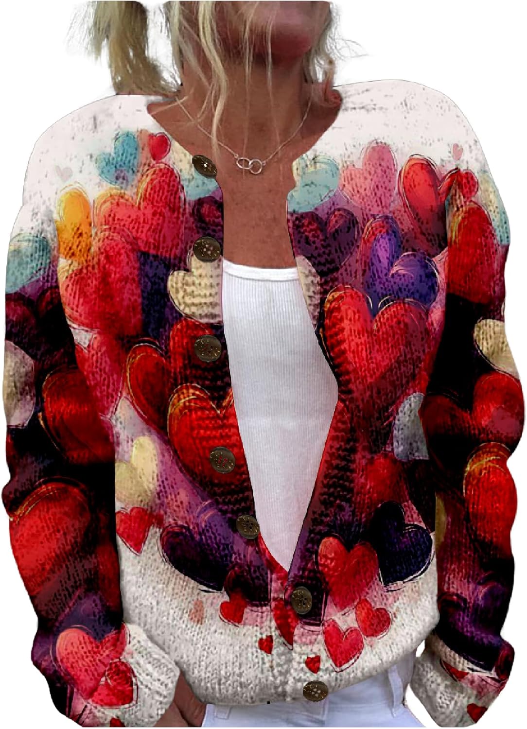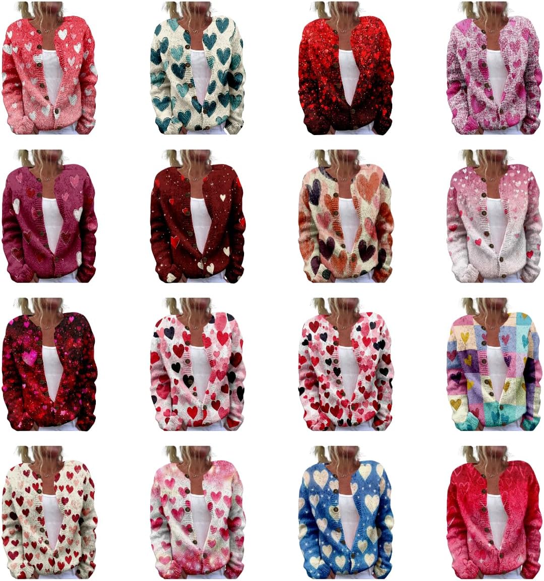 Heart Print Cardigan Valentines Sweater for Women Cute Chunky Button Up Plus Size 2025 Spring Fashion Warm Blouses