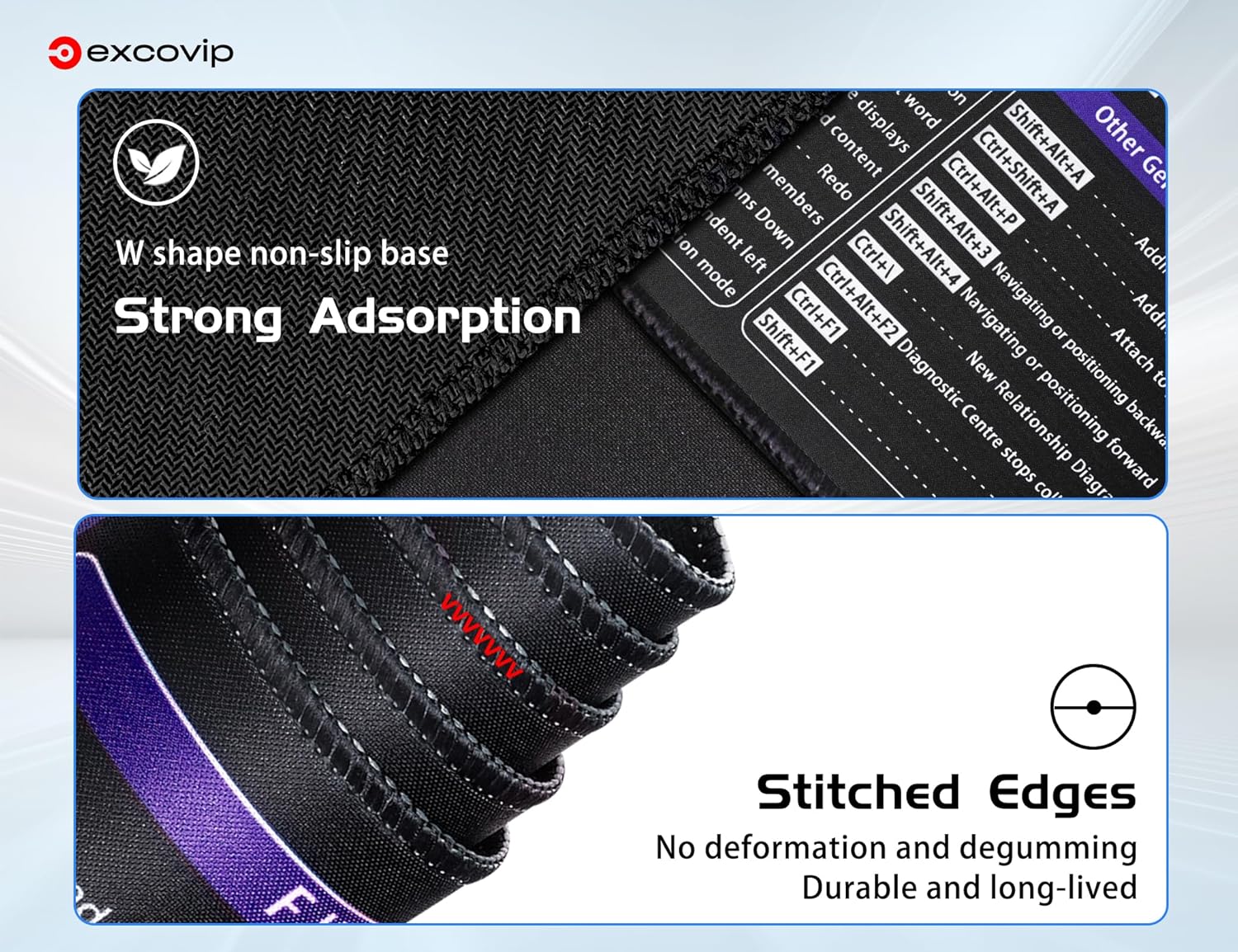 【Large Mouse Pad】Our extra-large mouse pad 31.4×11.8×0.07 inch(800×300×2 mm) is perfect for use as a desk mat, keyboard and mouse pad, or keyboard mat, offering you unparalleled comfort and support during long gaming sessions or work days.