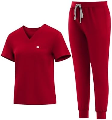 Medical Scrubs Set for Women - Classic V-Neck Top & Jogger Pants with Stretch Nursing Uniform Scrub Suit