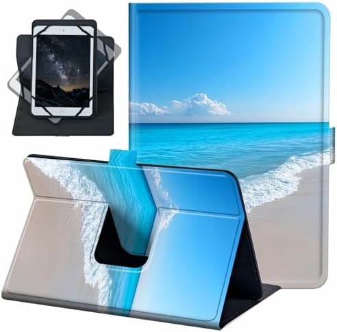 for Universal 10 10.1 Inch Android Tablet Case 360 Degree Rotating Leather Stand Folio Cover for iPad 9.7/10.2/10.5/Galaxy Tab 9-10.5"/Fire HD10 & More 9.0-10.5 Inch Tablet,Blue Sea Beach