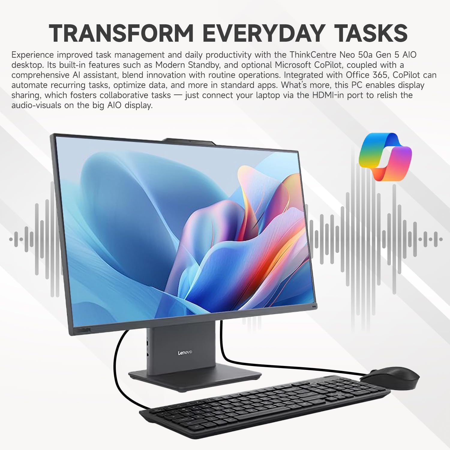 Lenovo ThinkCentre Neo 50a All-in-One Business Desktop, 27” FHD 100Hz Touchscreen, Intel Core i7-13620H, 32GB DDR5, 1TB SSD, Webcam, HDMI, Wi-Fi 6, Wired KB & M, Win 11 Pro, Adata Flash Drive Bundle