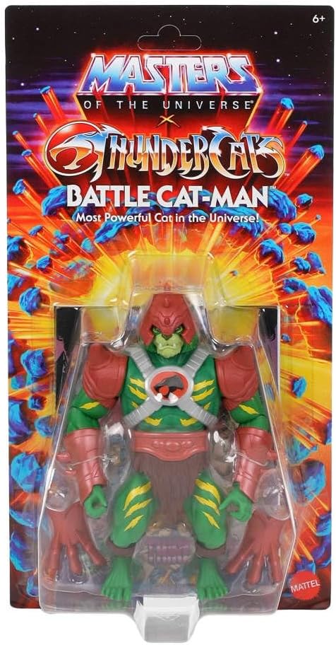 Masters of the Universe and ThunderCats, two iconic 80s action figure brands, come together to bring an exciting and nostalgic collaboration to life. Battle Cat, the most powerful cat in the universe, is re-interpreted as human warrior Battle Cat-Man with ThunderCats style helmet, harness, bracers and 2 claw accessories. He’s designed at Origins 5.5-inch scale, with 16 points of articulation and deluxe detail and modular body parts. A mini-comic is included for story context. This figure is a must-have for nostalgic MOTU and ThunderCat fans alike. Colors and decorations may vary.