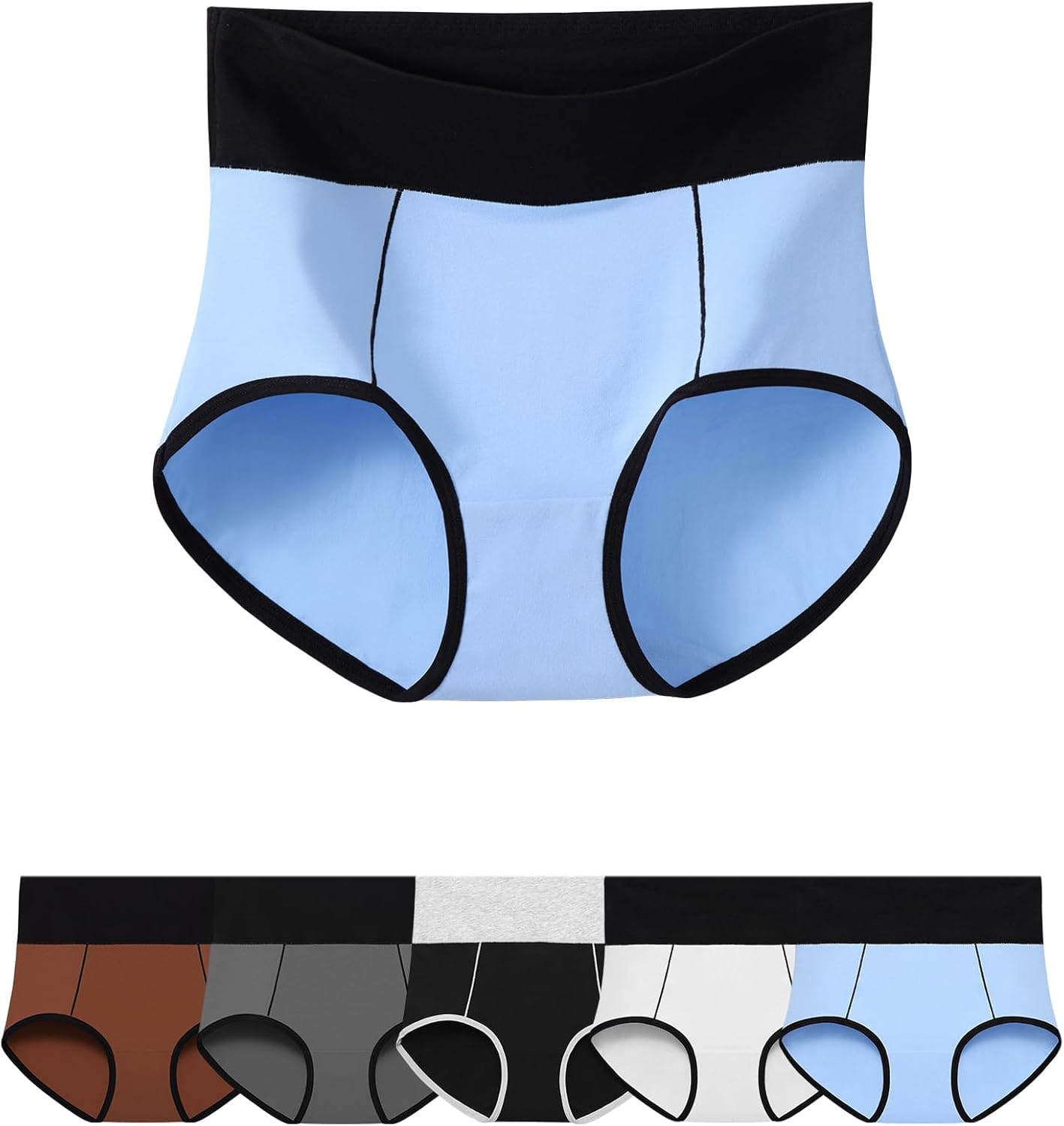 High Waisted Cotton Underwear for Women Postpartum Stretch Breathable Panties Ladies Full Coverage Briefs 5 Pack