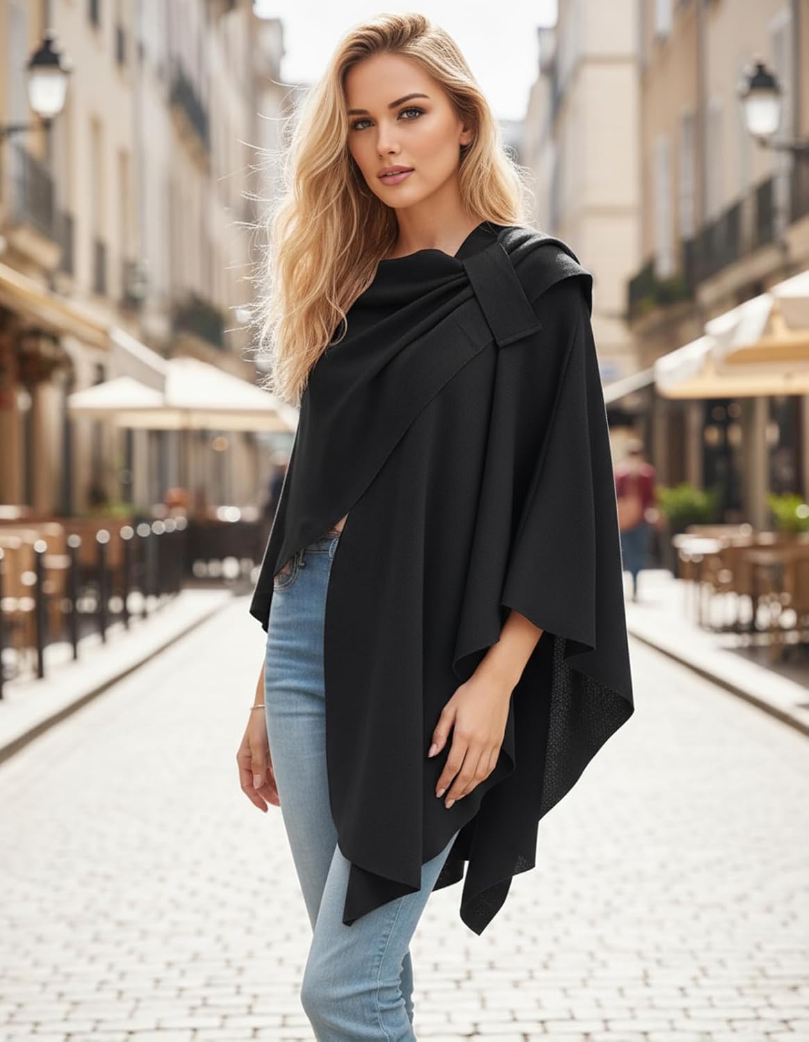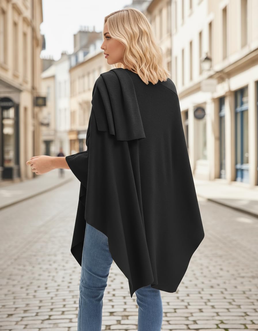 Womens Open Front Poncho Sweater Wrap Topper Knitted Elegant Shawls Cape for Spring Fall Winter