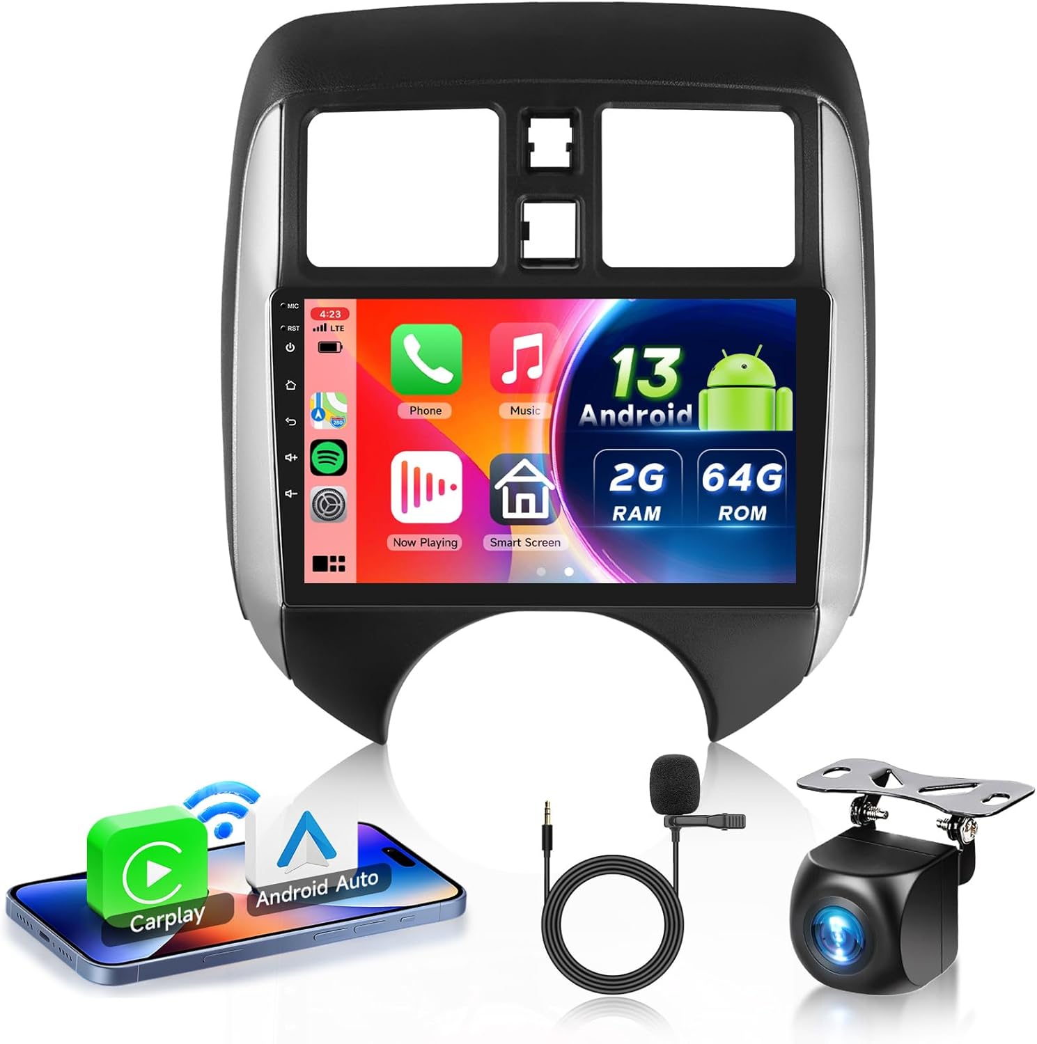 2G+64G Car Radio for Nissan Versa Note 2014-2018 Android 13 Car Stereo with Wireless Carplay Android Auto, 9 Inch Touch Screen Stereo Support GPS/WiFi/Bluetooth/FM/SWC/Backup Camera