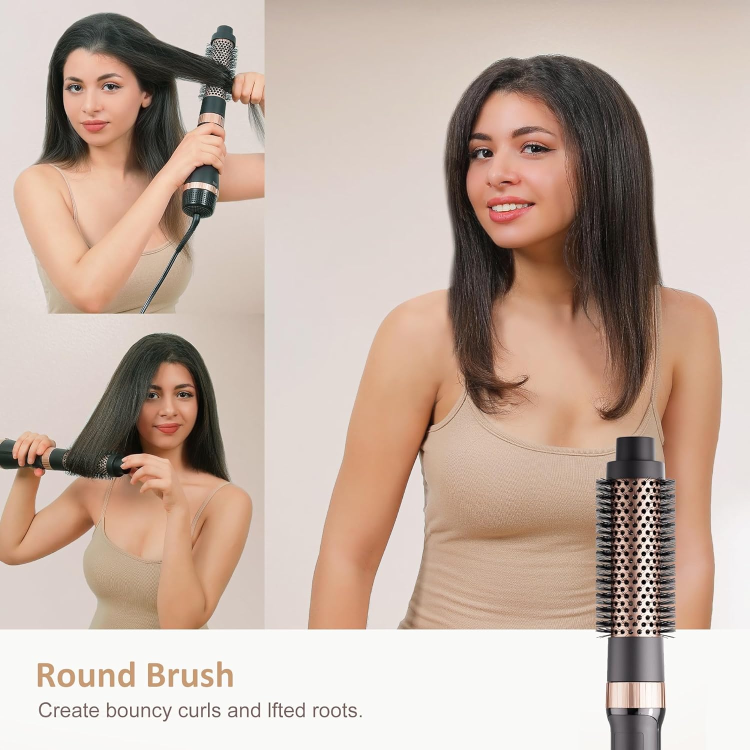 5 Styling Attachments: Featuring 5 interchangeable attachments includes hair dryer, straightening brush, curling Iron, volume brush and round brush that connects to the air styling wand, allowing you to effortlessly create various styles for all hair types.