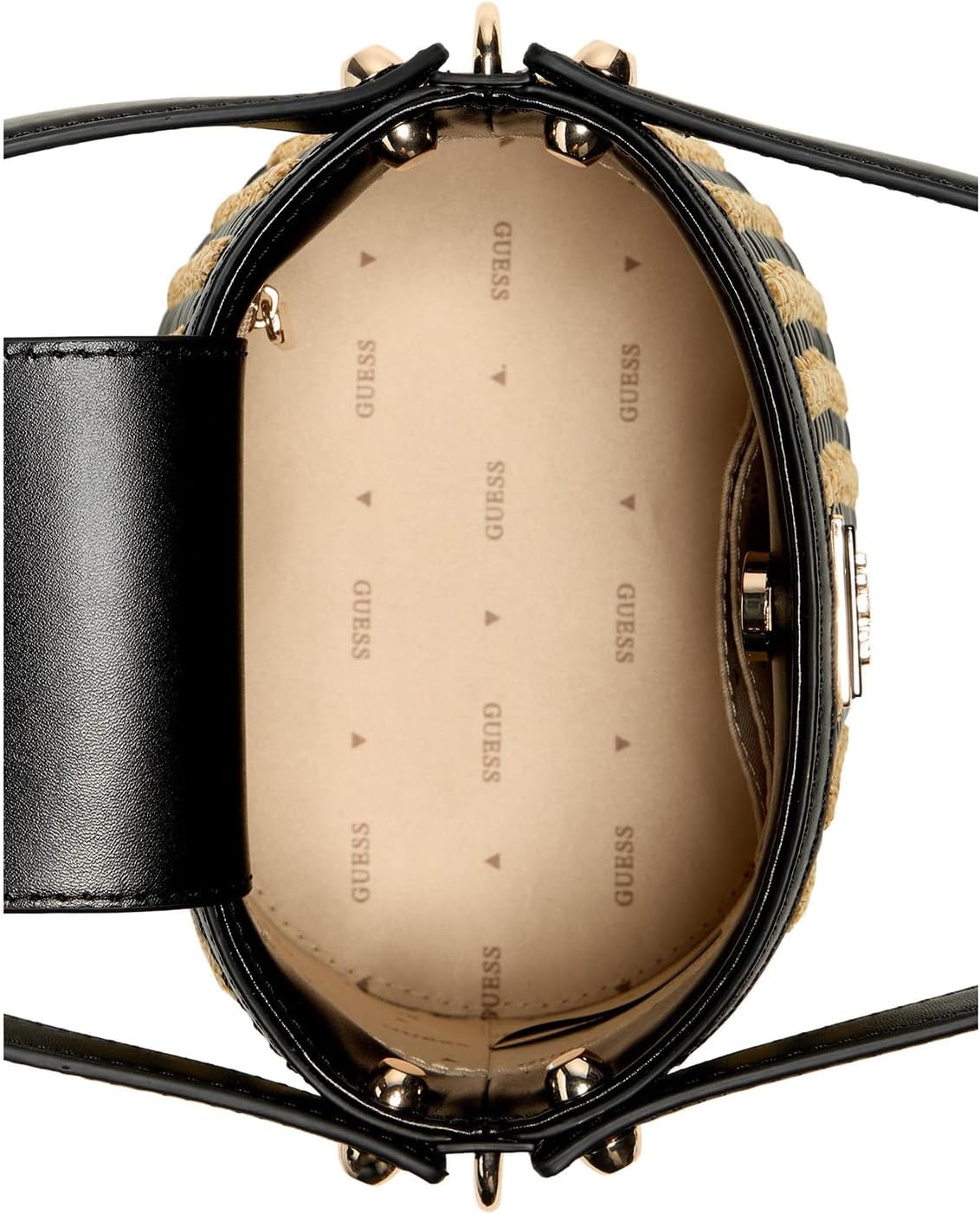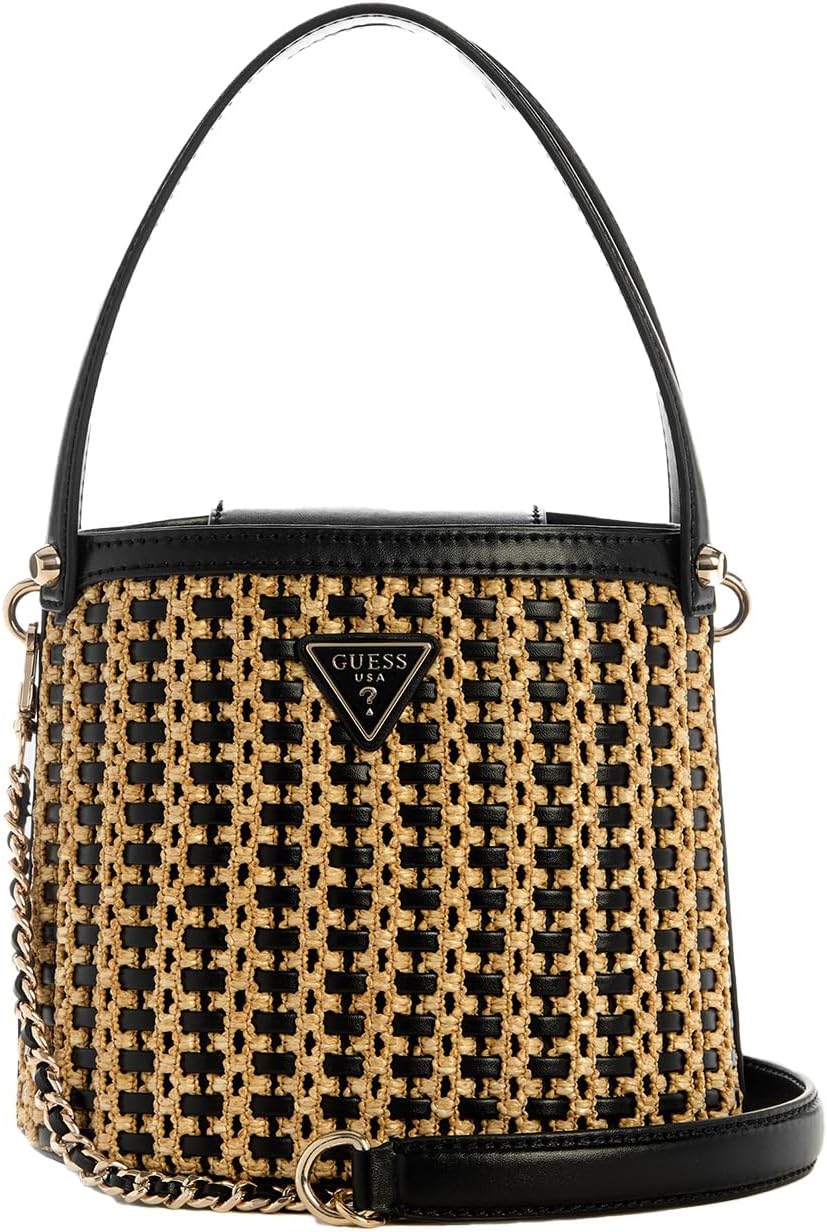 Atalia Crossbody Bucket in woven raffia with adjustble/removable crossbody strap