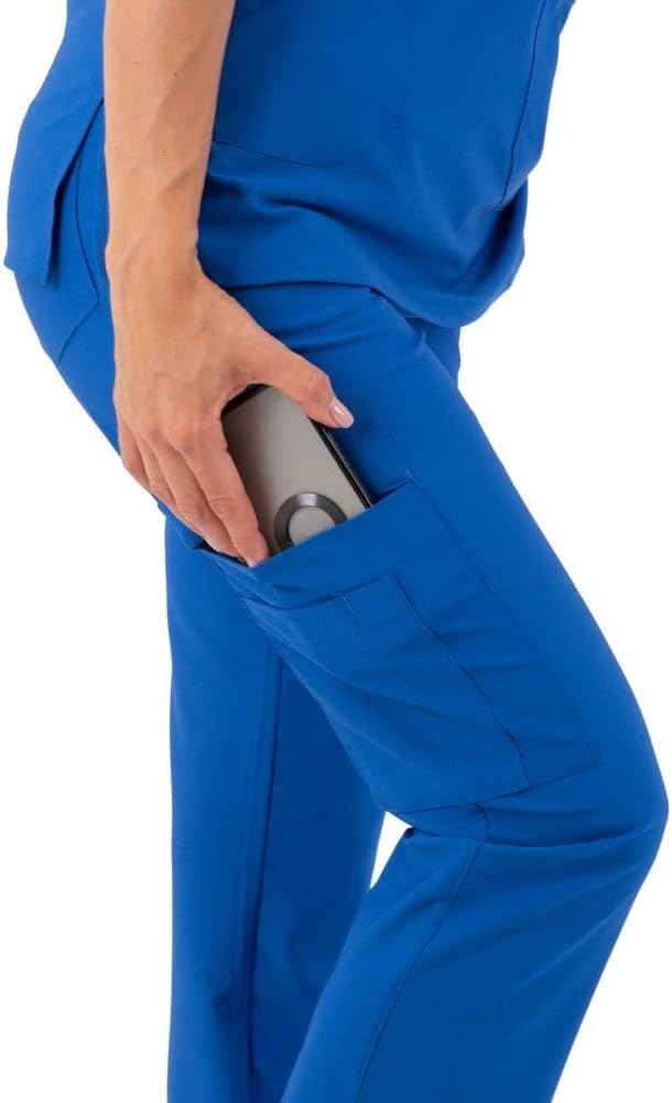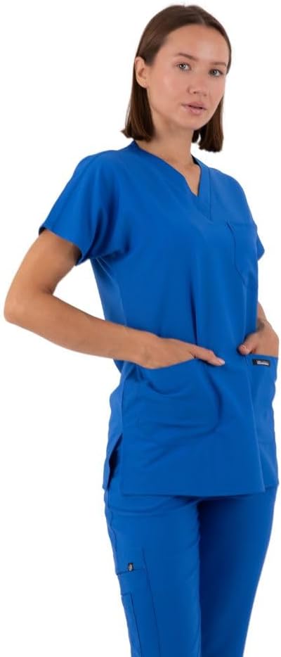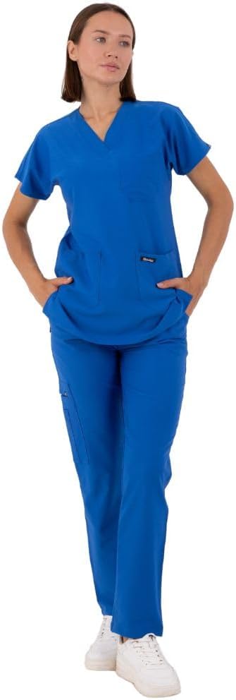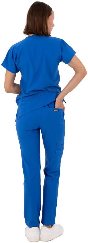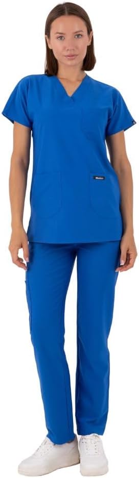 UNIYAZGAN Scrubs for Women Set, Medical Nursing Uniform 4 Way Stretch V-Neck Scrub Top with 3 Pocket & Pant with 5 Pockets