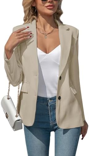 Women's Blazers Business Casual Padded Shoulder Blazer - Long Sleeve Slim Fit Work Office Suit Jackets with Pockets