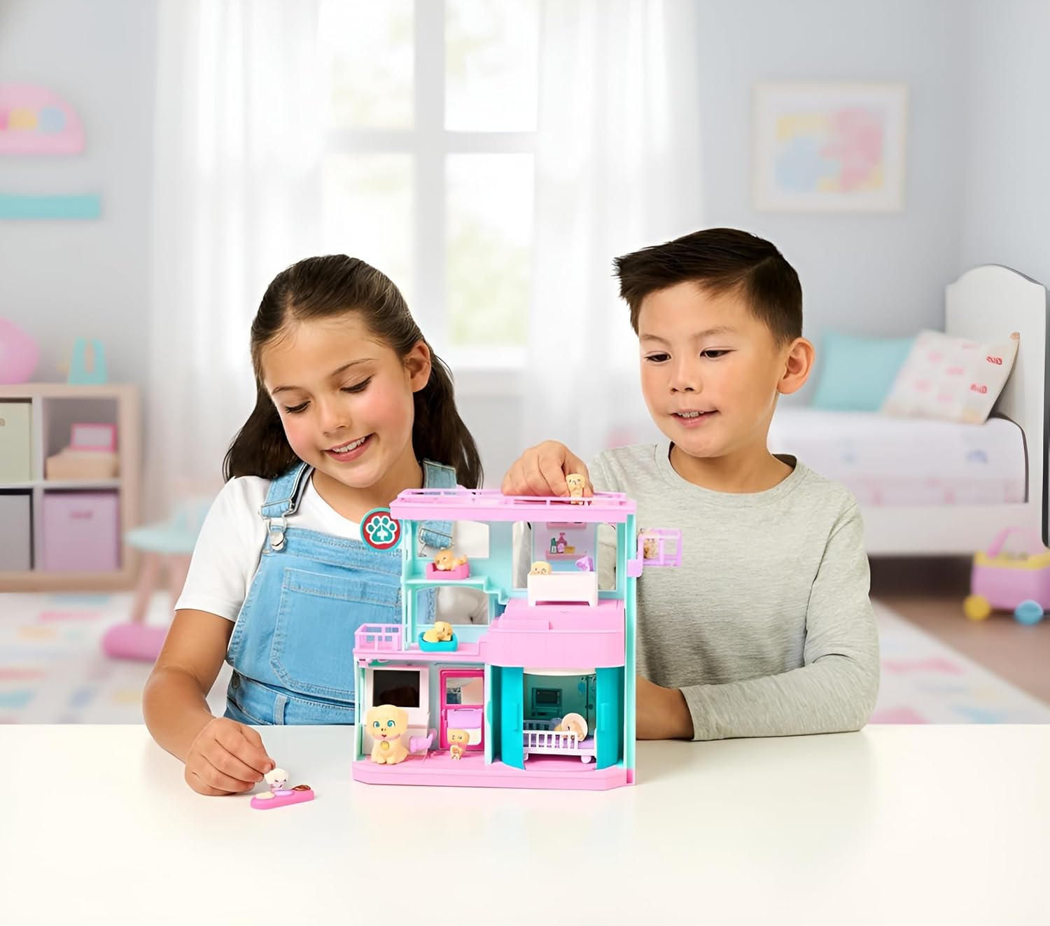 Ultimate Kids Playset Experience: Discover the joy of puppy births with the baby care pet hospital playset! This two-sided vet clinic playset has bath, meal, play, and care areas packed with surprises, storytelling, and interactive fun for playtime