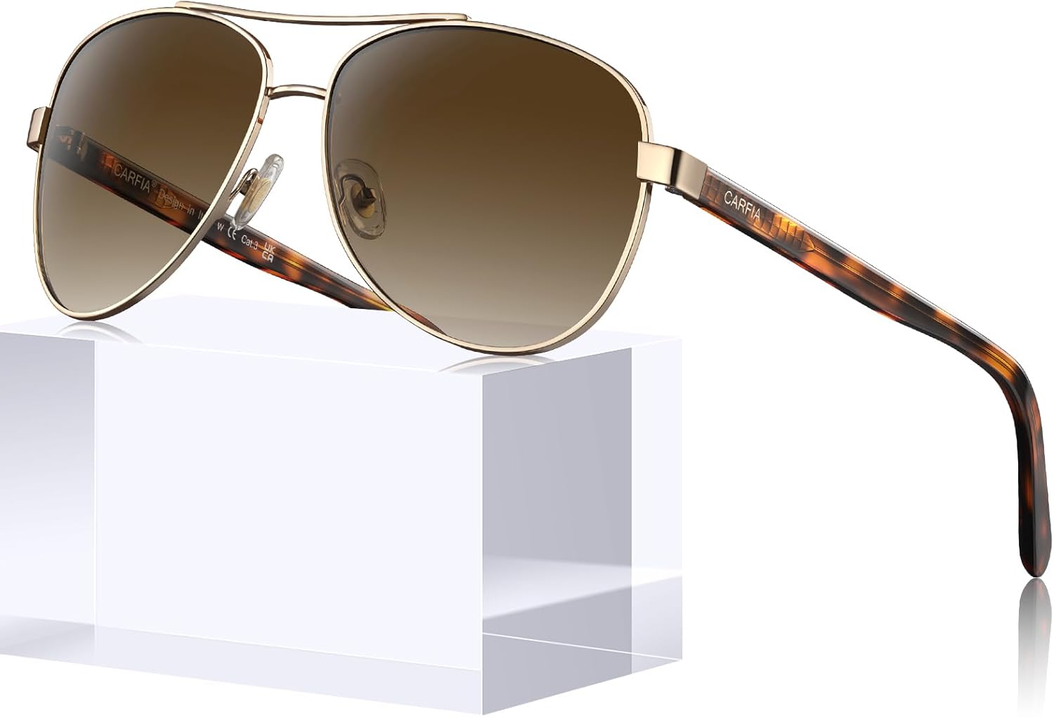 CARFIA Polarized Sunglasses for Men UV Protection, Classic Pilot Style, Acetate Tortoise Arms CA3216