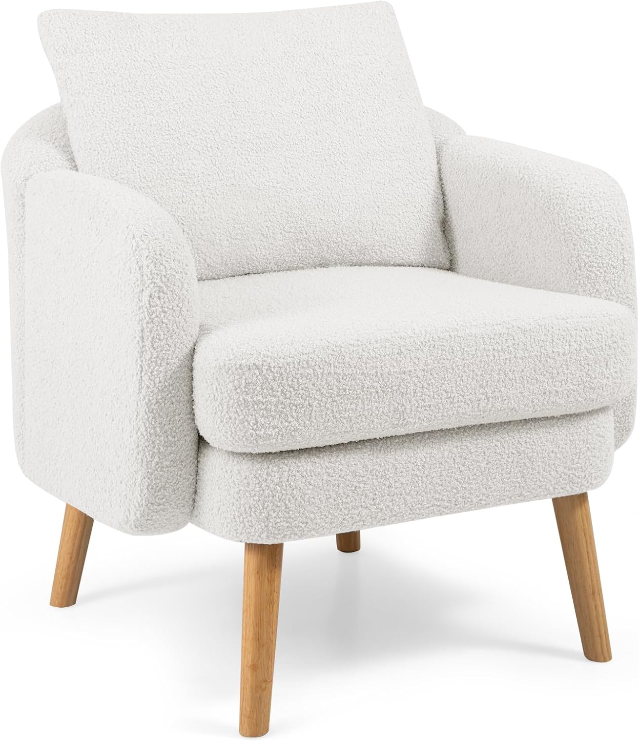 Giantex Sherpa Accent Chair, Modern Upholstered Single Sofa Chair with Back Pillow & Solid Rubber Wood Legs, Teddy Barrel Arm Chair for Reading, Living Room, Bedroom, Office, White